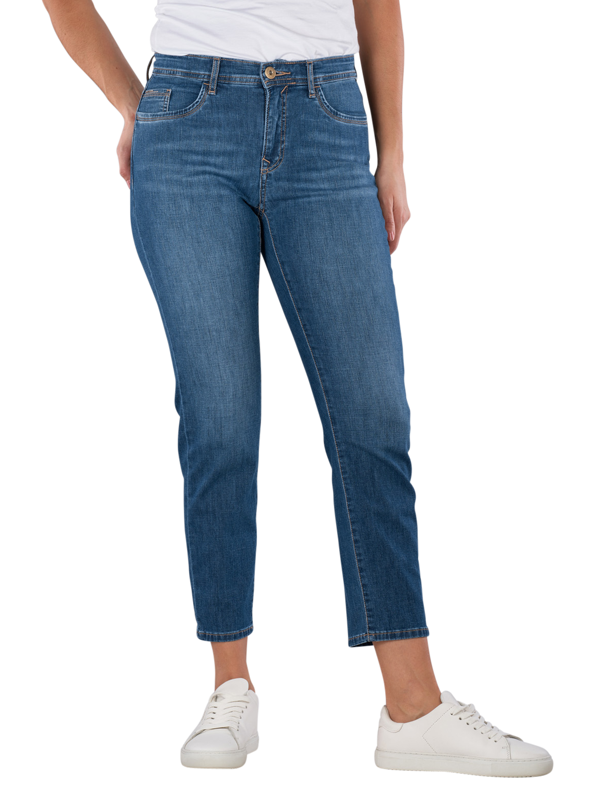 Entdecken Sie die Brax Mary S Jeans in Used Stone Blue eine stilvolle Wahl für die modebewusste Frau. Mit ihrem geraden Beinausschnitt und der hohen Bundhöhe bietet diese Cropped Slim Straight Jeans nicht nur eine schmeichelnde Passform, sondern auch optimalen Tragekomfort dank des Stretchanteils. Die Jeans präsentiert sich in einer mitteldunklen Waschung und vereint die klassischen Five-Pocket-Details. Hergestellt aus 75% Baumwolle und nachhaltig im BLUE PLANET-Programm, ist sie ideal für jeden Anlass.