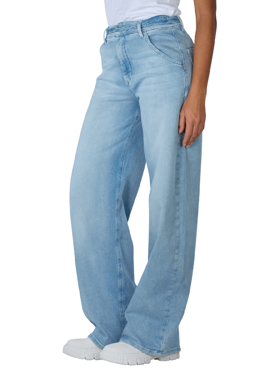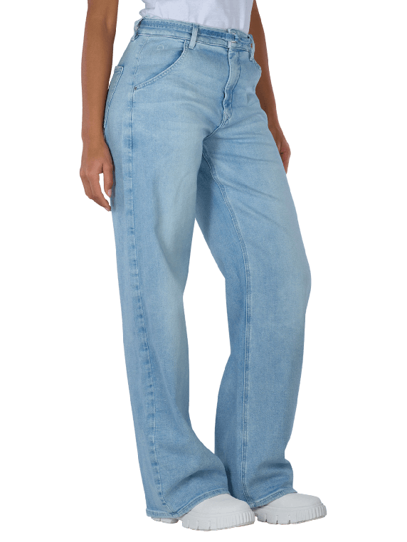 Die Dawn Denim Blink Jeans Wide Leg Barrel in Hellblau richtet sich an Frauen und kombiniert Stil mit Komfort. Diese Chino-Hose zeichnet sich durch ihren weiten, geraden Beinausschnitt und einen hohen Bund aus. Gefertigt aus Bio-Baumwolle, bietet sie mit Stretchanteil eine flexible Passform. Der Reissverschluss sorgt für einfaches Tragen, während die helle Waschung einen lässigen Look verleiht. Pflegeleicht im Schonwaschgang bei 30 Grad.