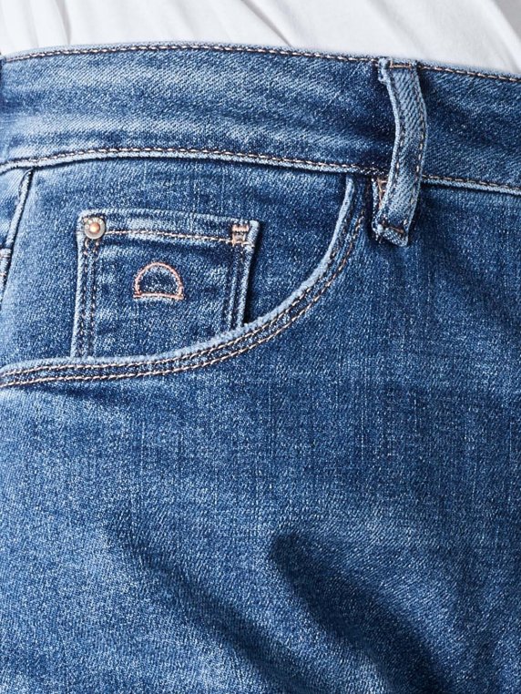 Bequem, entspannt und leger - die Dawn Denim Stardust Jeans O-Shape in der Farbe Medium Blue ist eine Five-Pocket-Jeans mit hohem Bund und locker, gerade geschnittenen Beinen, die bis zum Knöchel reichen. Die Jeans mit Stretchanteil überzeugt mit einem komfortablen Sitz und einer uneingeschränkten Bewegungsfreiheit. Dawn verwendet ausschliesslich Bio-Baumwolle aus ökologischem Anbau, daher werden deutlich weniger Treibhausgasemissionen bei der Produktion verursacht.