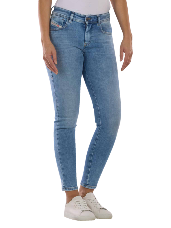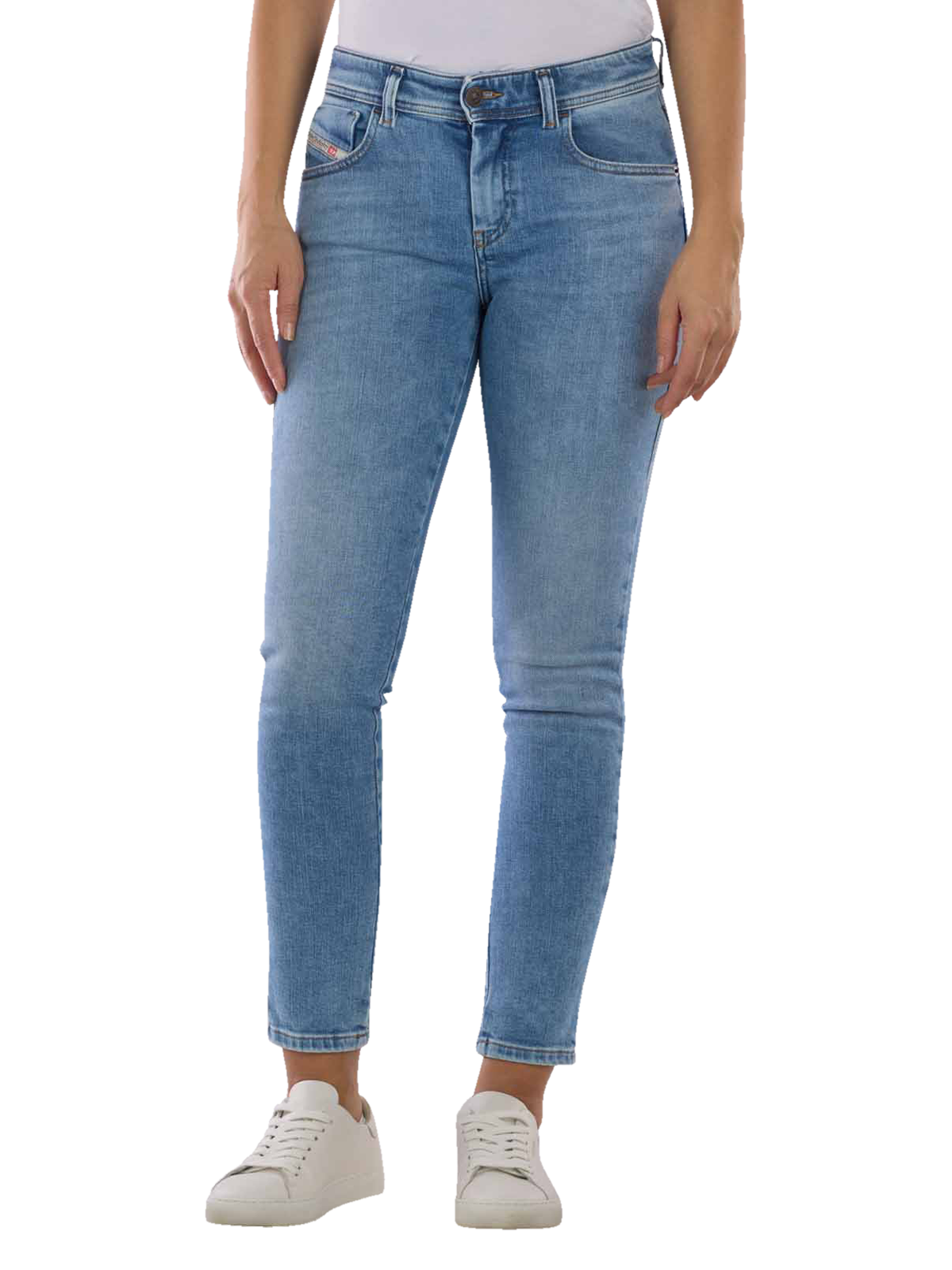 Die Slandy Jeans Super Skinny Fit von Diesel in Light Blue verkörpert einen lässigen und dennoch modischen Look im Five-Pocket-Stil. Eine mittlere Bundhöhe und extrem enge Oberschenkel erzeugen eine harmonische Silhouette. Der Stoffmix aus 79 % Baumwolle, 17 % Modal, 3 % Elastomultiester und 1 % Elastan verleiht ein bequemes Tragegefühl. Die Standarddicke des Stoffs macht die Damenjeans zu einer guten Wahl für jede Jahreszeit.