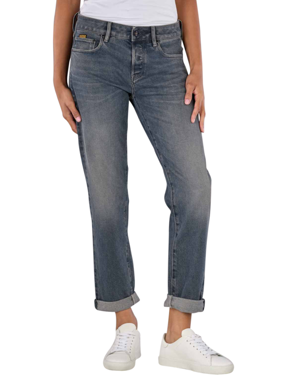 Die G-Star Kate Jeans Boyfriend Fit Antic Sand Blast bietet eine entspannte Passform und mittlere Bundhöhe. Aus 99% Baumwolle und 1% Elasthan gefertigt, garantieren sie Komfort und Flexibilität. Diese mittelblauen Jeans mit geradem Beinausschnitt und mittlerer Waschung eignen sich perfekt für Frauen, die einen lässigen Stil bevorzugen. Der Reissverschluss und das klassische Five-Pocket-Design runden das Modell ab. Pflegehinweis: Normalwaschgang bei 30°C, nicht bleichen.