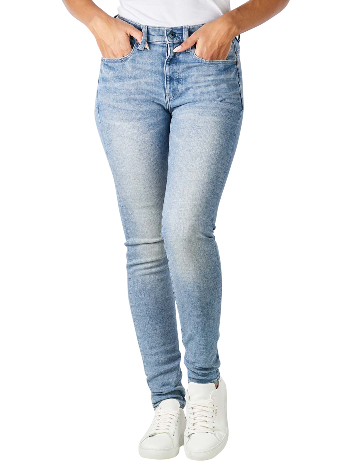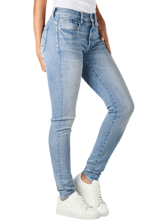 Die G-Star Lhana Jeans Skinny Fit in der Farbe Sun Faded Niagara ist eine hautenge Five-Pocket-Jeans mit normaler Bundhöhe und eng geschnittenen Beinen. Die Jeans im angesagten Used-Look wird mit einem Knopf und einem Reissverschluss verschlossen. Sie besteht aus einem Baumwoll-Materialmix mit hohem Stretchanteil und kann bei 30 C im Feinwaschgang gewaschen werden. Am besten auf der Leine oder an der frischen Luft trocknen lassen.