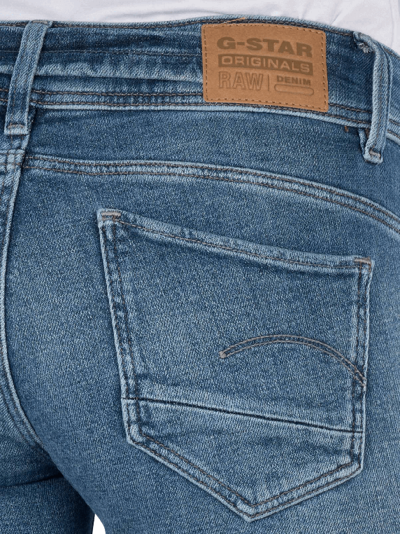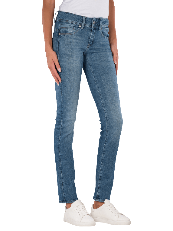 Die G-Star Midge Jeans Slim Straight Fit Antique Faded Lake bietet eine gerade Passform mit mittlerer Bundhöhe. Sie ist in einem hellblauen bis mittelblauen Farbton gehalten und verfügt über einen praktischen Reissverschluss. Mit ihrem Stretchanteil sorgt sie für Bewegungsfreiheit und Komfort. Die Jeans ist für den normalen Waschgang bei 30°C geeignet und bietet durch die Five-Pocket-Design ausreichend Stauraum für persönliche Gegenstände.