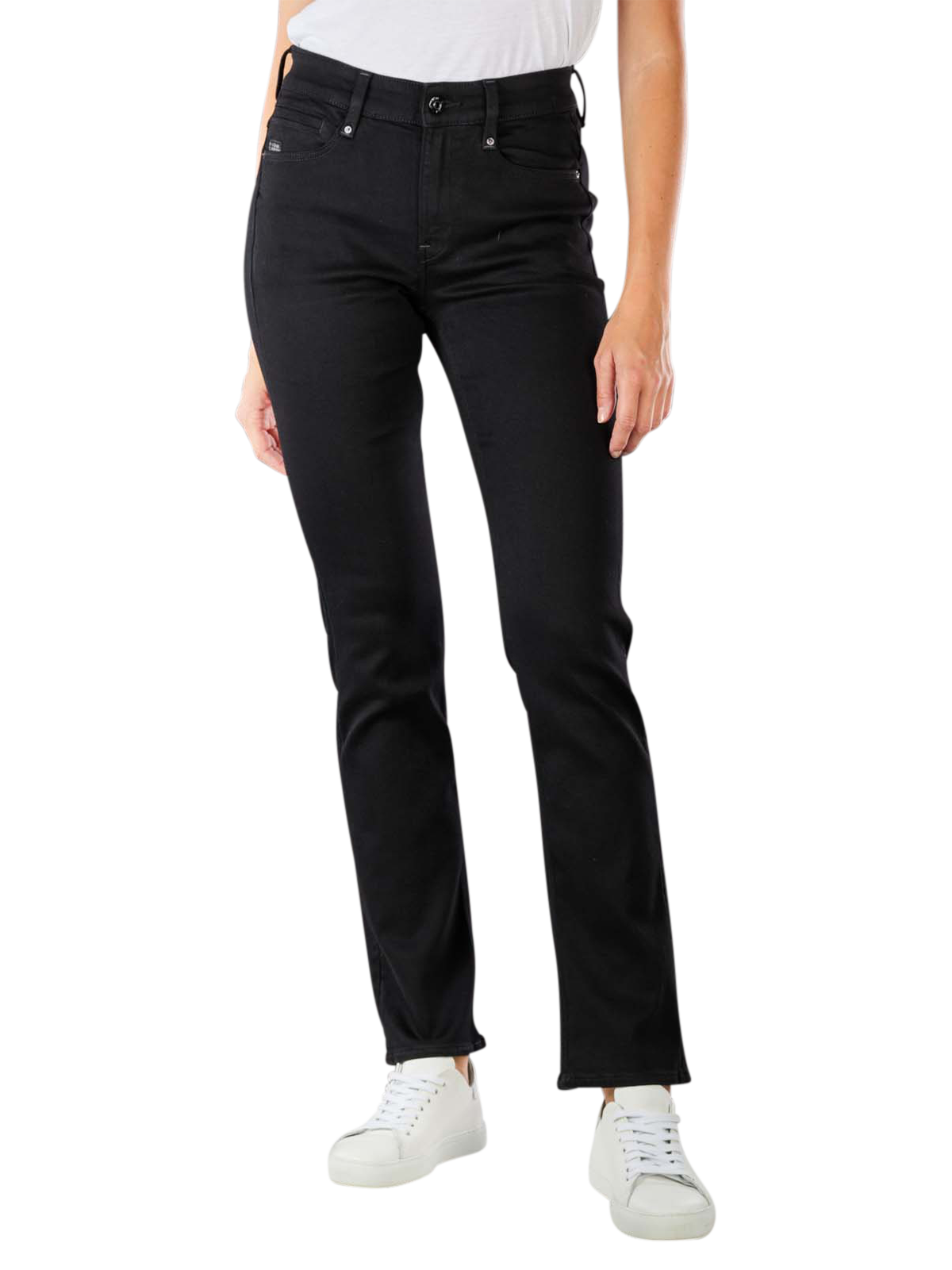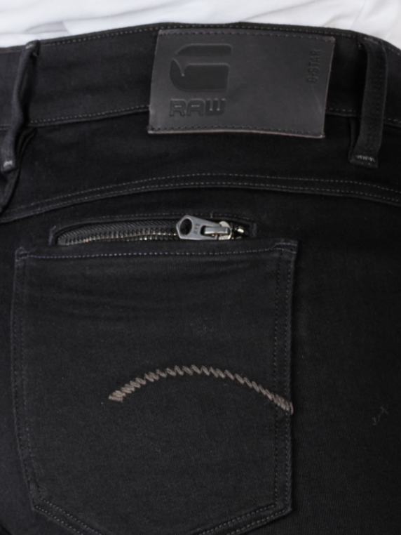 Die G-Star Noxer Straight pitch black hat einen mittelhohen Bund und ist an Hüfte und Oberschenkel eng, am Bein gerade geschnitten. So kann sie umgeschlagen oder gerade getragen werden. Sie hat einen hohen Stretch Anteil und behält auch nach mehrfachem Tragen ihre Form. Am hinteren Bund ist das schwarze G-Star Logo aus Leder eingenäht.
