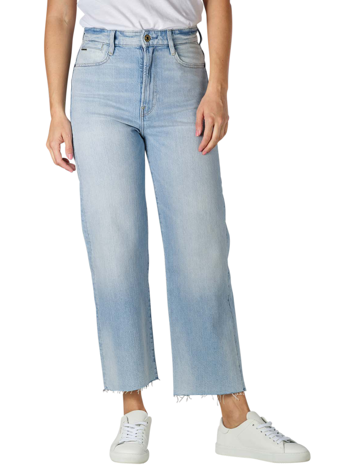 Die Ultra High Tedie Jeans von G-Star ist aus Baumwolle mit leichtem Elasthan-Anteil hergestellt und verleiht der Trägerin einen leichten Stretch bzw. viel Bewegungsfreiheit. Der Straight-Fit-Schnitt betont die Figur und zaubert einen sommerlichen Look mit ausgefransten Beinabschlüssen.
