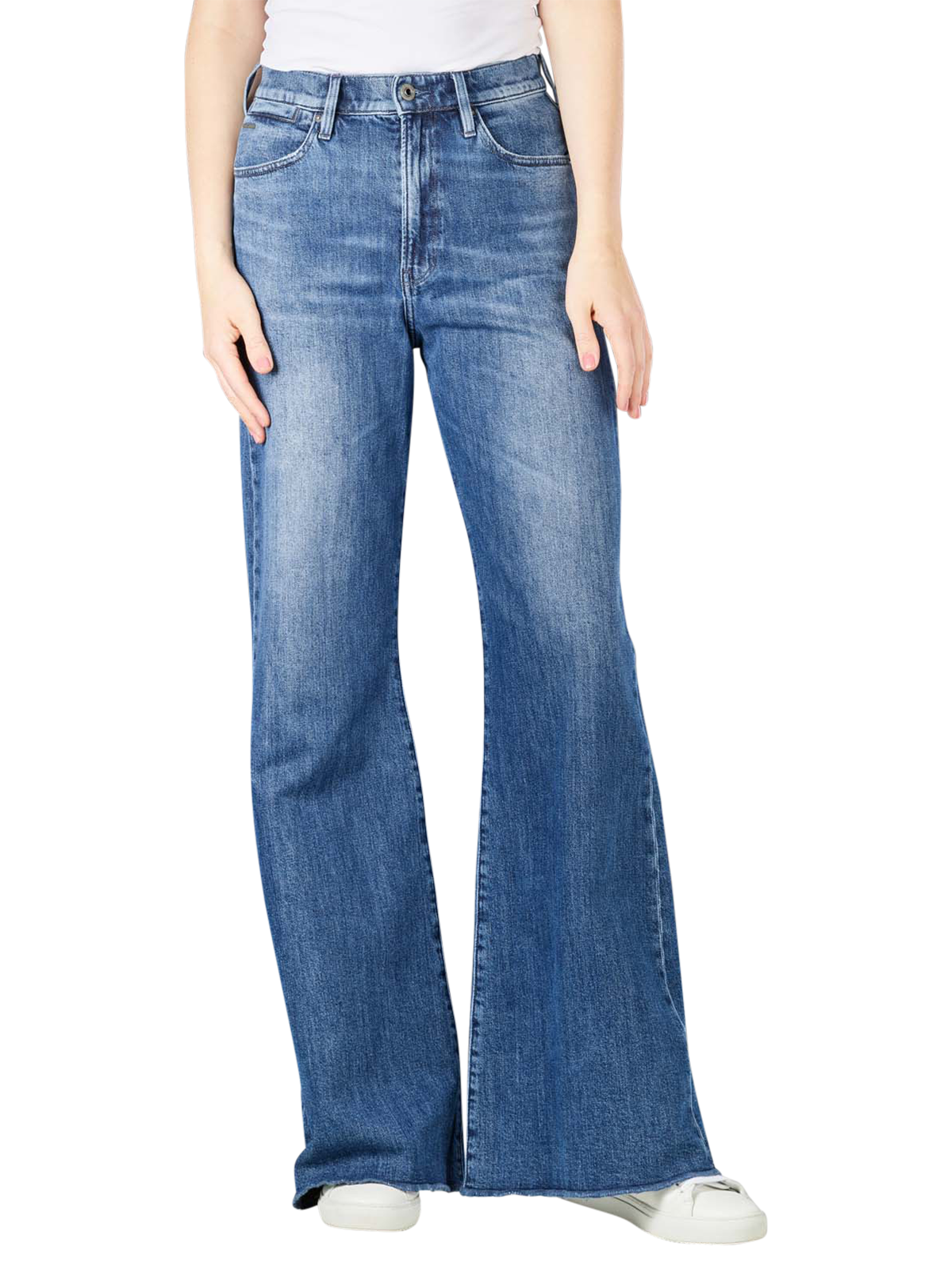 Diese Ultra High Deck Jeans der Marke G-Star hat eine Wide Leg Passform und einen Loose Fit. Sie ist verfügbar in der Farbe Faded Santorini. Sie besteht aus einem dickeren Jeansstoff. Der Bund dieser Jeans sitzt besonders hoch, die Passform der Beine ist besonders weit. Diese G-Star Jeans besteht zu 98 % aus reiner Baumwolle und zu 2 % aus Polyester,