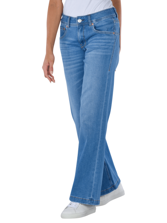 Die herrlichen Edna Jeans Flared Comfort kombinieren Stil und Tragekomfort in einer einzigartigen Form. Mit ihrem mittelhohen Bund und dem weit geschnittenen Bein bieten sie nicht nur eine bequeme Passform, sondern auch eine modische Silhouette. Hergestellt aus hochwertiger, strapazierfähiger Baumwolle mit einem Hauch von Elasthan, sorgen sie für eine perfekte Anpassung. Die mittelblaue Waschung verleiht einen lässigen Look, der vielseitig kombinierbar ist. Ideal für jeden Anlass, überzeugen diese Jeans durch erstklassige Qualität und zeitloses Design.