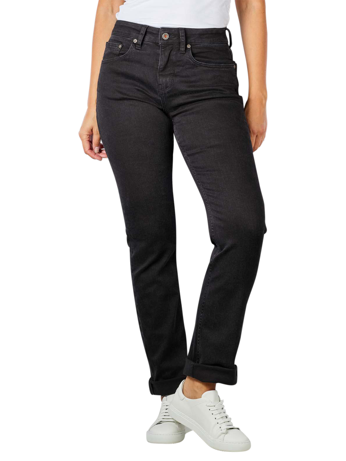 Eine Jeans in einem modernen Look, so zeigt sich die Kuyichi Sara Jeans Straight Fit. Klassisch zeigt sich der enge Beinverkauf, durch den Stretchanteil ist die Jeans bequem und schenkt viel Bewegungsfreiheit. Die hohe Bundhöhe schenkt eine weibliche Optik im Taillenbereich. Die Farbe Black Rinse und die Ziernähte auf den Gesässtaschen verleihen der Jeans ein lässiges Erscheinungsbild.