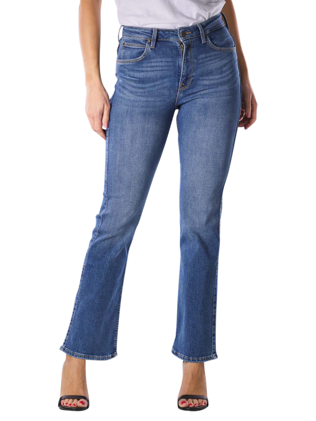 Durch den Skinny-Bootcut und den hohen Bund schmeichelt diese Jeans sehr der Figur und liegt mit ihrer Form absolut im Trend.