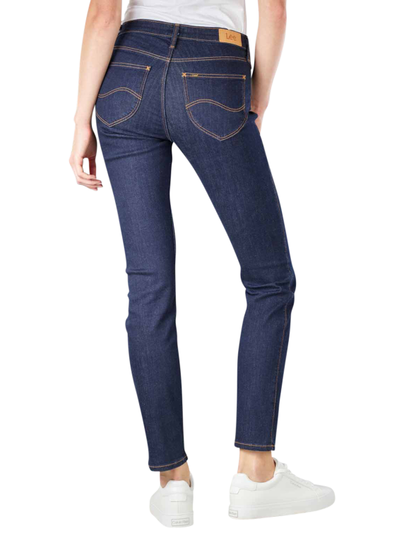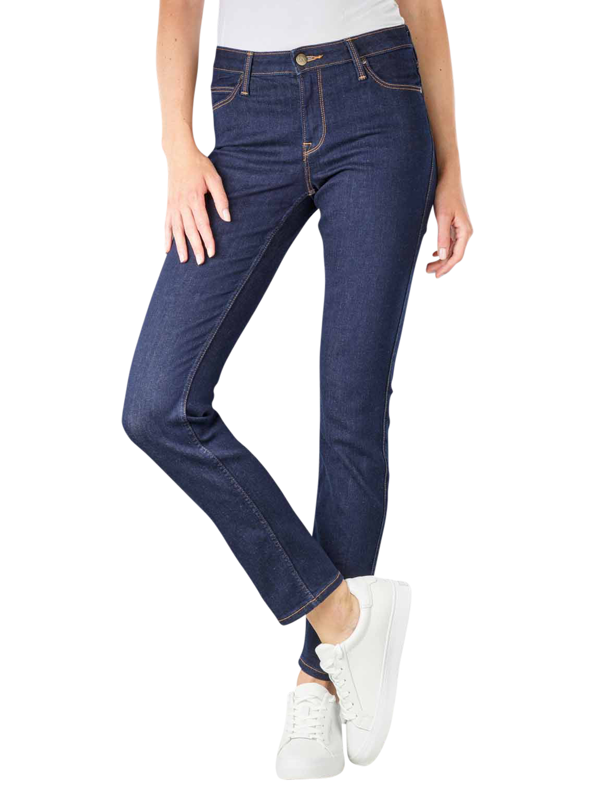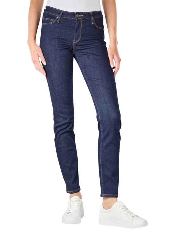 Mit der Figur betonenden Passform Slim Fit begeistert die Lee Damenjeans Elly: Hier zeichnen sich ein enger Beinausschnitt, enge Oberschenkel und ein mittelhoher Bund aus. Für einen komfortablen Sitz der engen Jeans besteht das Modell aus 85 % robuster Baumwolle, 13 % Polyester und 2 % Elasthan - für den Stretch-Effekt. Die Hose in der dunkelblauen Denim-Färbung One Wash ist im angesagten Five-Pocket-Style gefertigt.