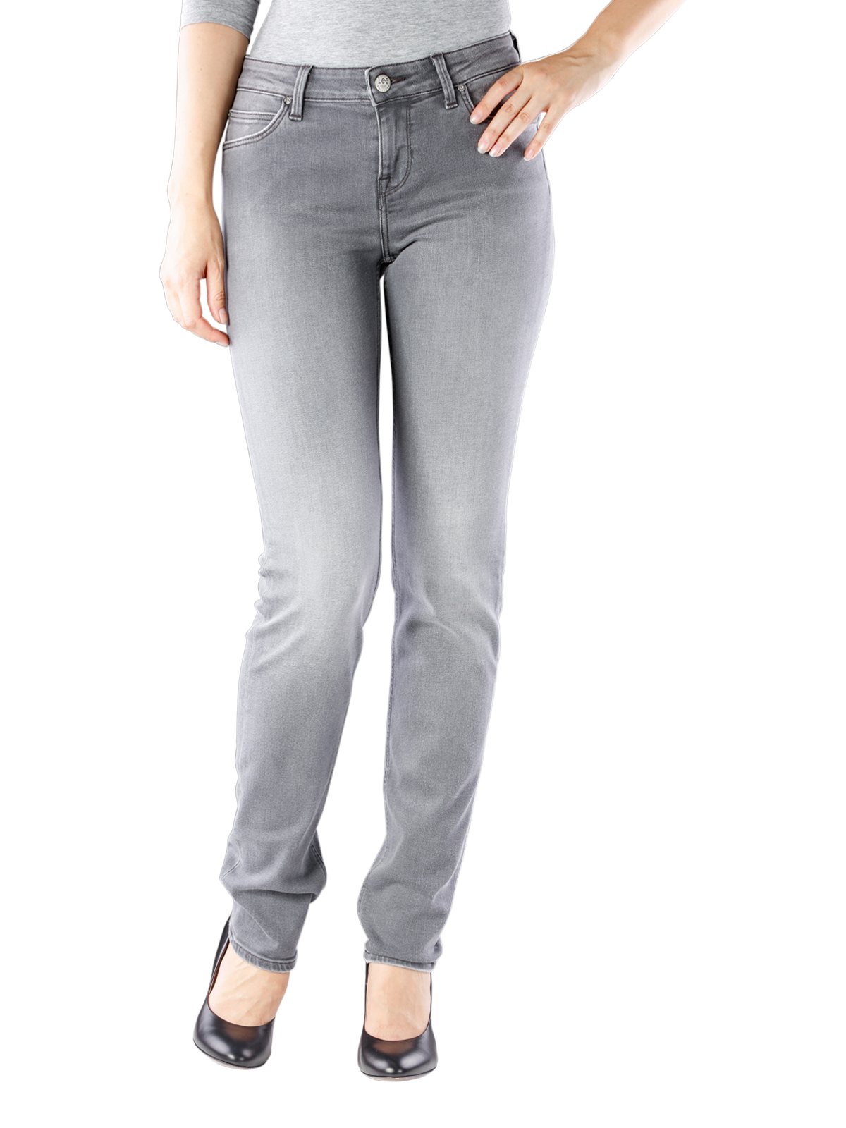 Die hellgraue Lee Marion Straight Jeans gunmetal ist ein echter Allrounder. Sie passt dank der eleganten Optik ebenso gut in den beruf wie in die Freizeit. Betont wird die helle Optik durch den leichten Used Look und durch dunkelgraue Nähte.