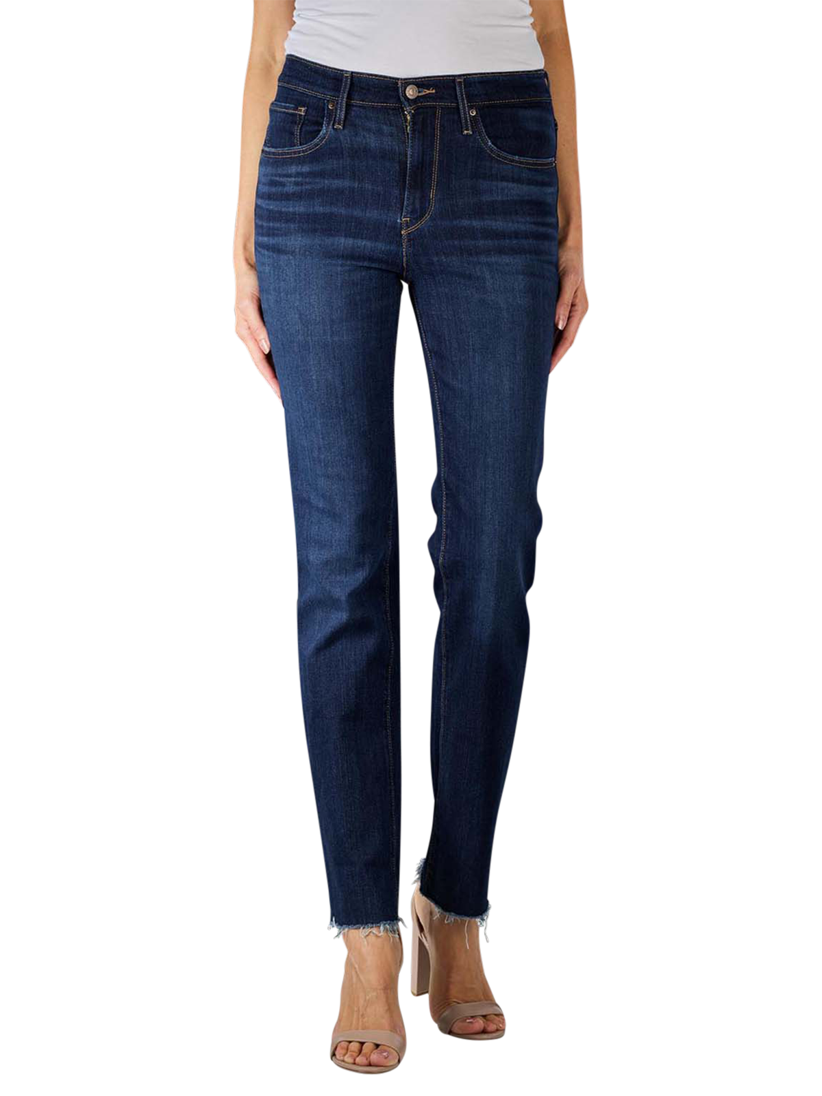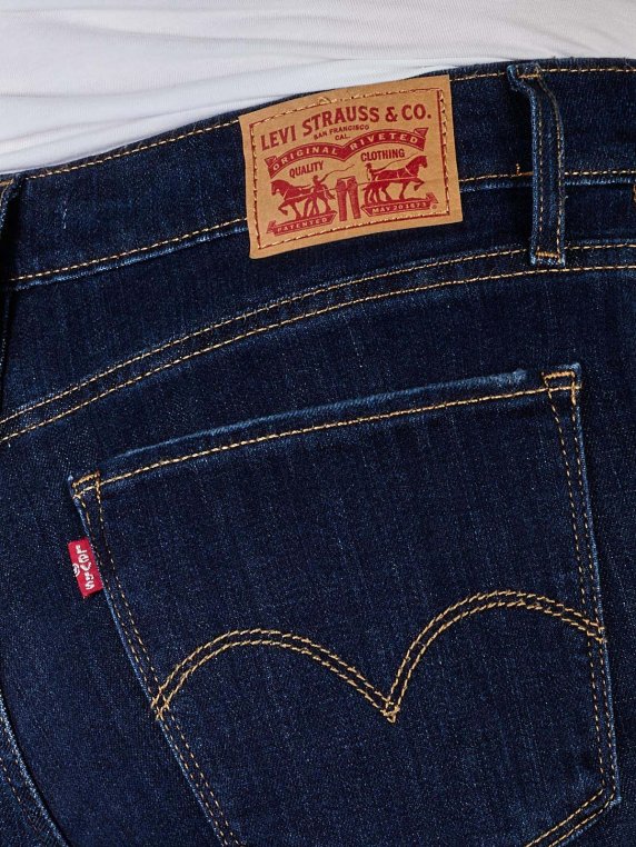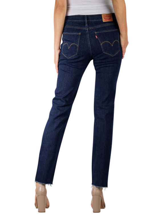 Dieses Modell 724 von Levi's in der Farbe Chelsea Hour ist eine gerade geschnittene, dunkelblaue Damenjeans. Es ist eine Five-Pocket-Jeans mit Reissverschluss und einem hohen Bund. Die Jeans, die aus 71 % Baumwolle, 21 % Viskose sowie Polyester und Elasthan gefertigt wurde, liegt eng an und betont die Silhouette der Trägerin.