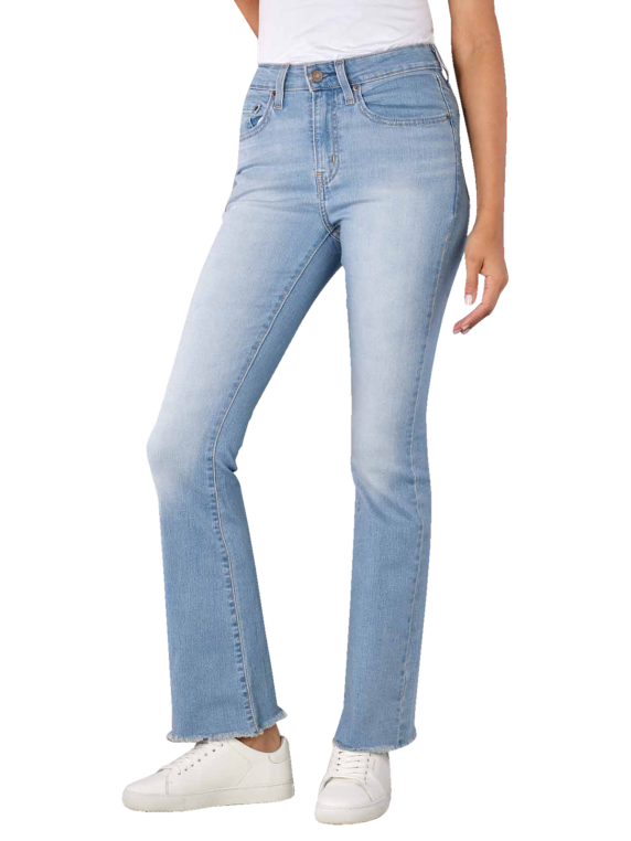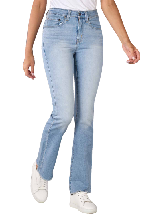 Die leichte Levi's 725 Jeans High Rise Bootcut besteht aus Baumwolle, Polyester und einem kleinen Elasthan-Anteil. Der klassische 5-Pocket-Stil mit Reissverschluss und Knopf wird durch die Used Look Waschung an Oberschenkeln und Gesäss unterstrichen. Das gerade Bein endet in einem leicht ausgestelltem Fussausschnitt, der nicht nur zu Stiefeln passt. Die Labellogos stechen optisch durch ihre verwaschenen und dennoch kräftigen Farben hervor.