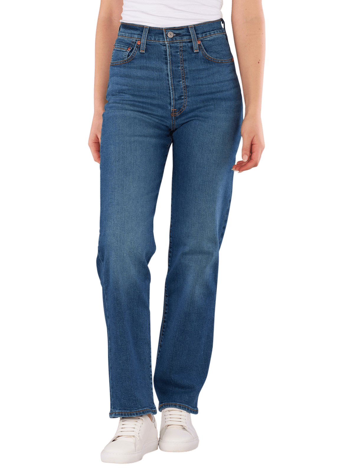 Entdecken Sie die Levi's Ribcage Jeans in der Farbe Mittelblau für Frauen. Diese Straight Fit Jeans bietet einen hohen Bund und einen klassischen, geraden Beinausschnitt, der jeder Figur schmeichelt. Hergestellt aus 85% Baumwolle, 14% Polyester und 1% Elasthan, sorgt der Stretchanteil für optimalen Tragekomfort und Bewegungsfreiheit. Der zeitgemässe Look wird durch die Five-Pocket-Details und die mittlere Waschung abgerundet. Ideal für jeden Anlass kombinieren Sie sie vielseitig zu Ihren Lieblingsoberteilen!