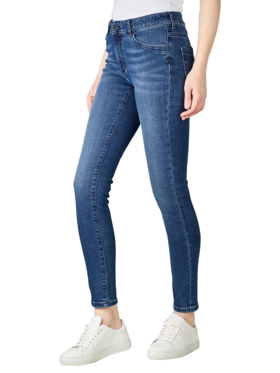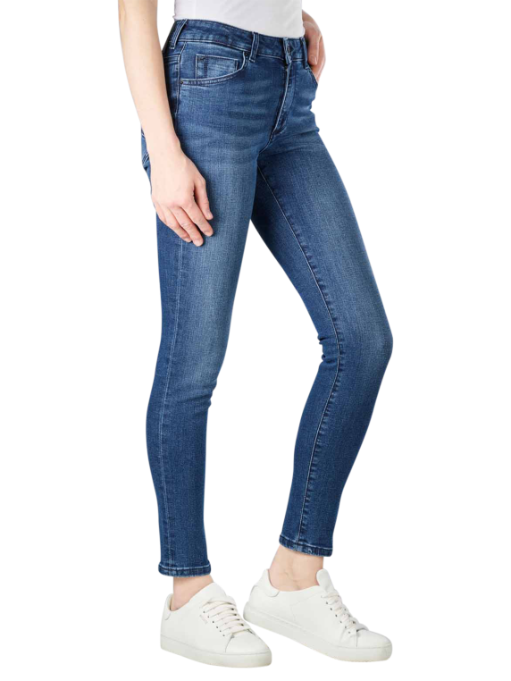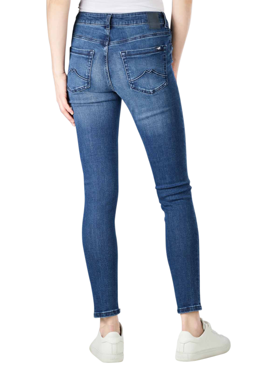 Die Mid Waist Shelby Jeans der Marke Mustang ist eine Damenjeans, die im Skinny Fit Stil geschnitten ist. Sie ist Teil des ECO Programms Better Cotton Initiative und besteht aus 82 % Baumwolle, 16 % Polyester und 2 % Elasthan. Die Bundhöhe der Five-Pocket Jeans ist Mittelhoch, die Oberschenkel sowie der Beinausschnitt verläuft eng. Es wird empfohlen, die Jeans bei 30 °C im Normalwaschgang zu waschen und sie nicht im Trommeltrockner zu trocknen.