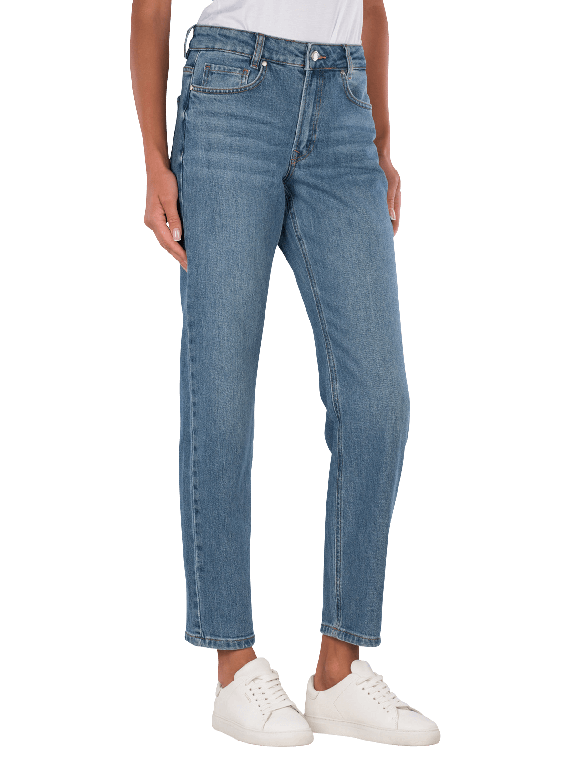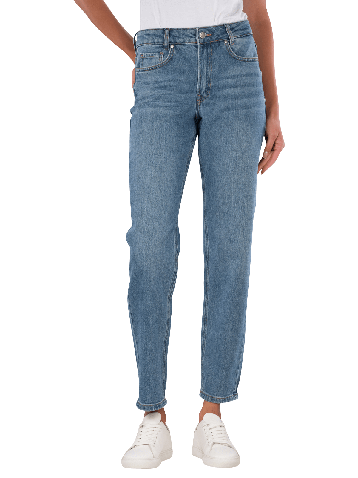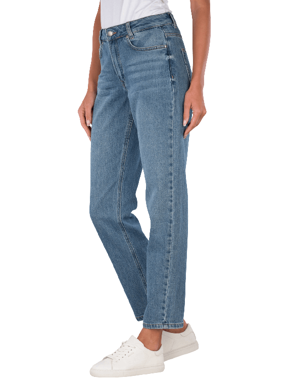 Die Mommy Jeans Tapered Fit in Mittelblau bieten einen hohen Bund und einen engen Beinausschnitt. Sie sind aus einem bequemen, stretchfähigen Material gefertigt, das Bewegungsfreiheit ermöglicht. Mit ihrem klassischen Five-Pocket-Design und der mittleren Waschung sind sie vielseitig kombinierbar. Die Jeans sind pflegeleicht und können bei 30°C im Schonwaschgang gewaschen werden, was die Handhabung erleichtert.