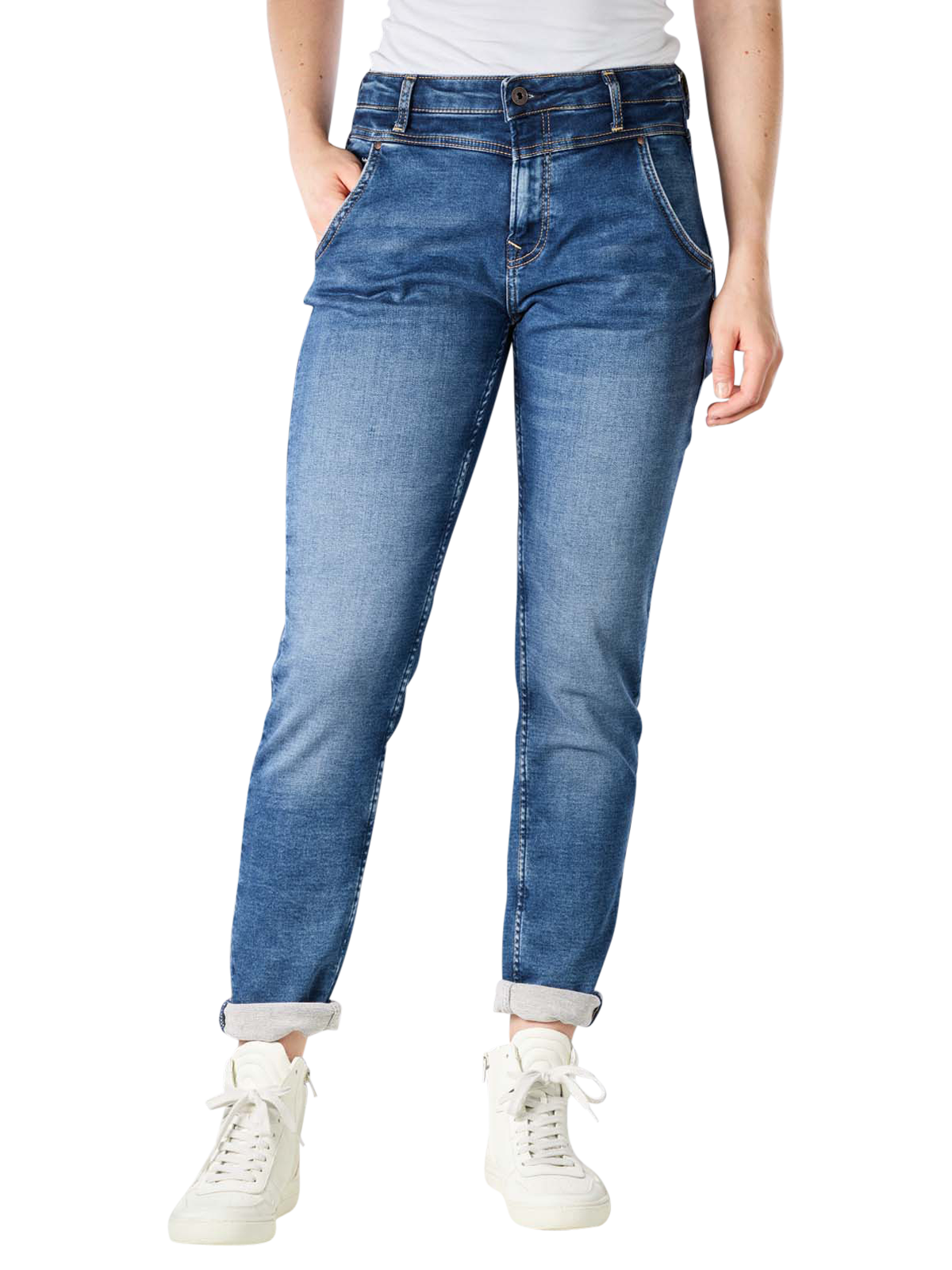 Die Pepe Jeans Carey Tapered Fit ist eine Damenjeans des Five-Pocket-Typs, die Stretchanteile und einen Reissverschluss hat. Ihr Stoff weist Standarddicke auf und die Hose lässt sich hervorragend zu jeder Art von Casual-Stil tragen. Die Herstellung dieser Jeans erfolgt im Einklang mit den Richtlinien des ECO-Programmes "Wiser Wash".