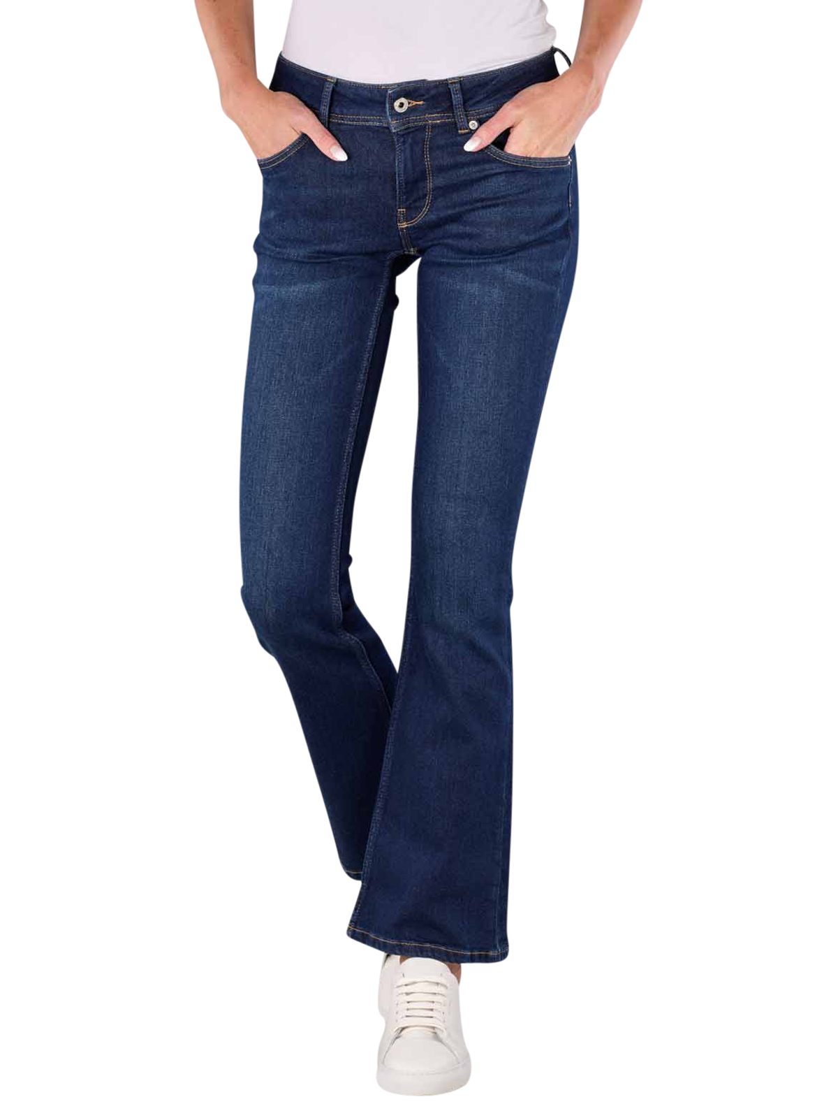 Die Pepe Jeans Low New Pimlico Flare Fit in Dunkelblau sind perfekt für Frauen, die eine gemütliche Hose mit Stil suchen. Die Jeans haben eine weite Passform am Bein und einen tiefen Bund. Sie bestehen aus strapazierfähigem, dehnbarem Material und sind ideal für den Alltag. Mit ihrer dunklen Waschung und dem klassischen Five-Pocket-Design bieten sie sowohl Komfort als auch modischen Chic. Waschbar bei 40°C.