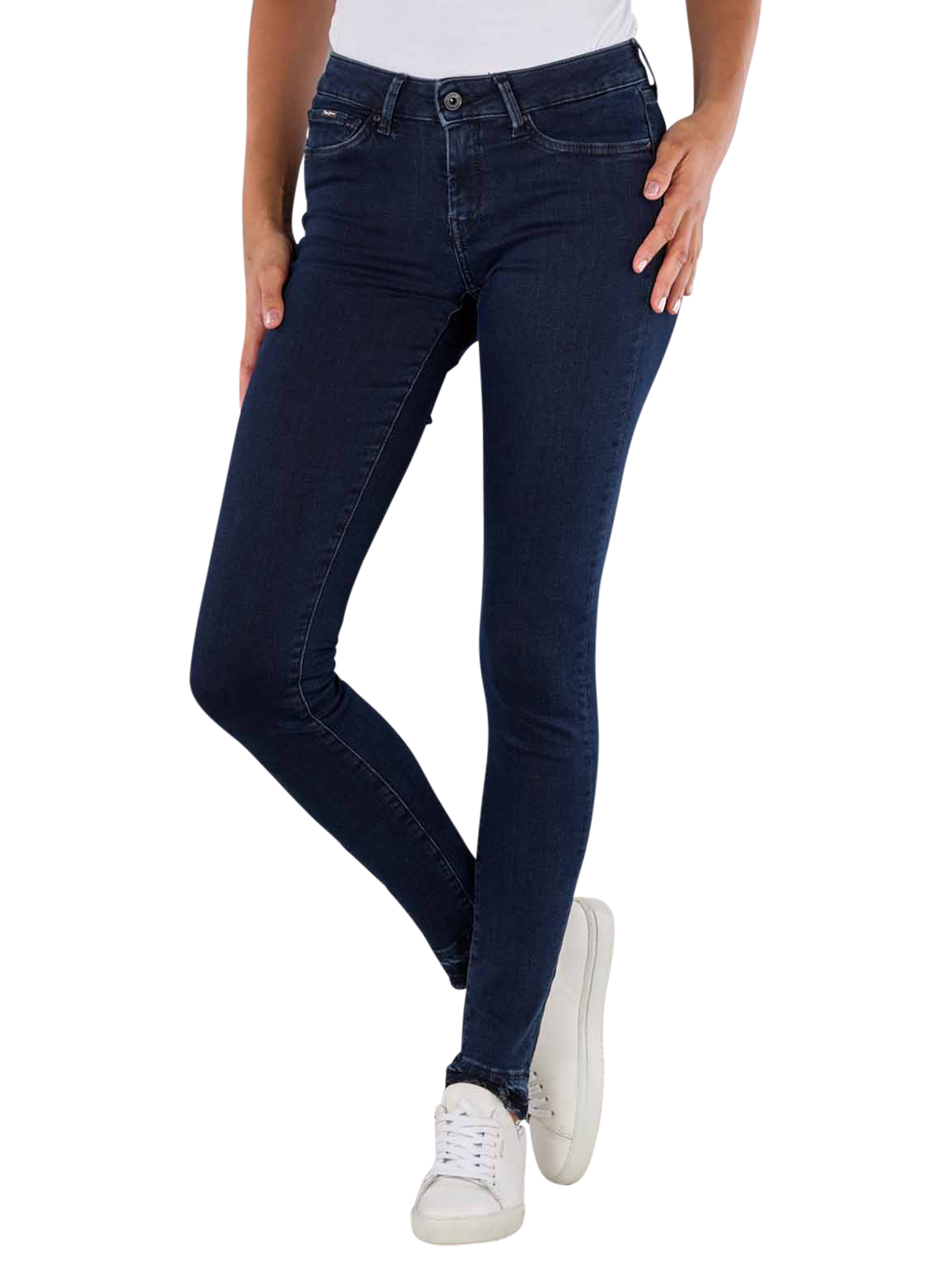 Die Pepe Jeans Pixie Skinny Fit in Dunkelblau bieten eine eng anliegende Passform mit einem niedrigen Bund. Diese Damenjeans bestehen aus 98% Baumwolle und 2% Elasthan für optimalen Tragekomfort. Mit einem klassischen Five-Pocket-Design und Reissverschluss ausgestattet, überzeugen sie durch ihre dunkle Waschung und Standard Dicke. Dank des Stretchanteils bieten sie Bewegungsfreiheit. Pflegeleicht bei 40°C im Normalwaschgang und nicht bleichen.