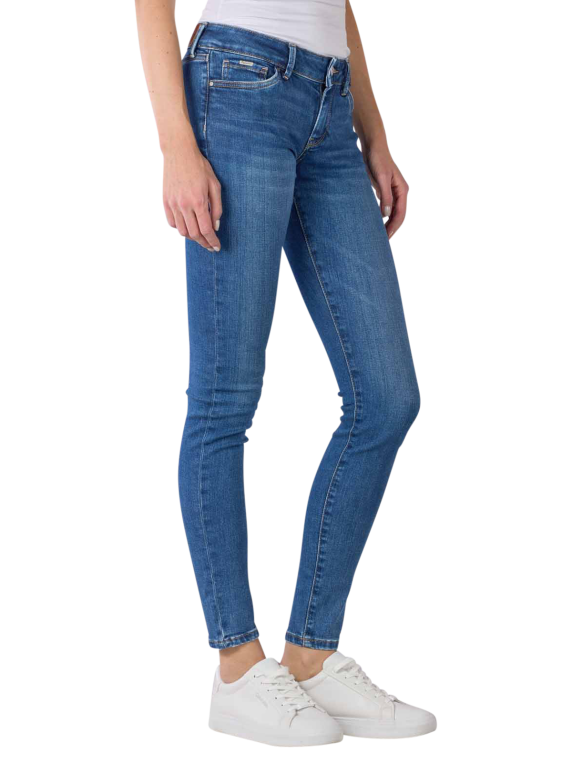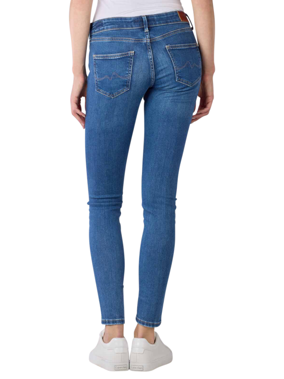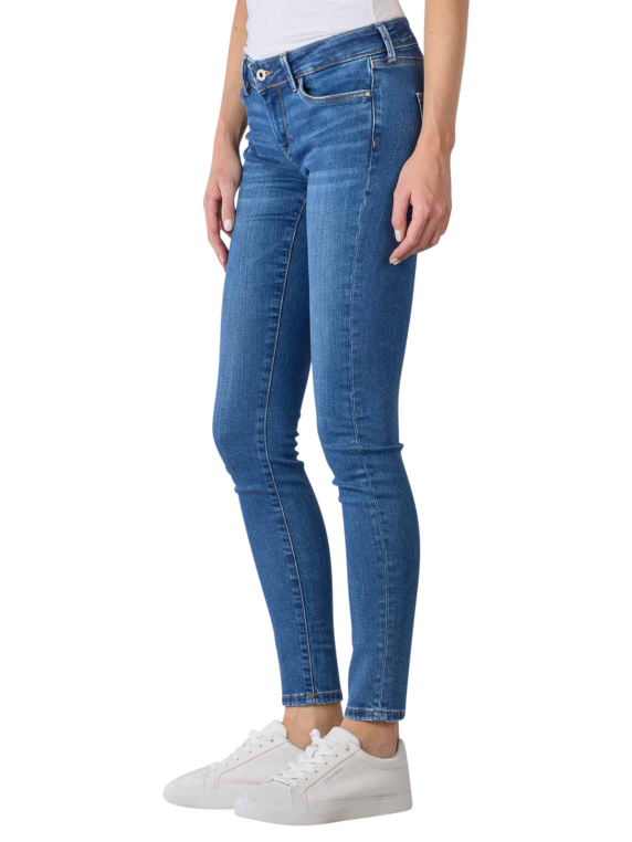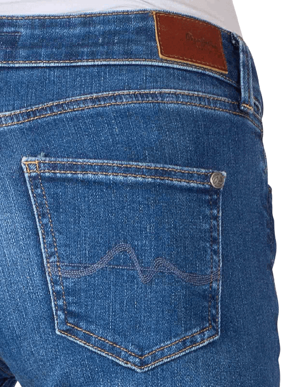 Die Pepe Jeans Pixie Skinny Fit in der Farbe Medium Blue ist eine 5-Pocket-Jeans mit mittlerer Bundhöhe und sehr engem Beinverlauf, der sich zum Abschluss hin leicht weitet. Sie besteht aus einer hochwertigen Bio-Baumwollmischung mit Stretchanteil und bietet dadurch trotz besonders enger Silhouette einen hohen Tragekomfort. Die Jeans ist bei 30 °C waschbar und lässt sich bei niedrigen Temperaturen trommeltrocknen.