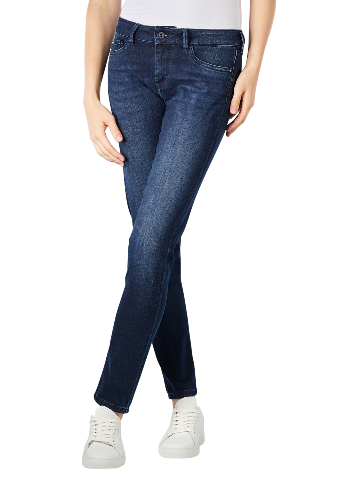 Mit der Pixie Skinny Fit Damenjeans von Pepe Jeans erhalten Sie ein modernes Five-Pocket-Modell, das mit praktischem Reissverschluss und zwei Knöpfen zu schliessen ist. Die Beinausschnitte sind eng und die Oberschenkel sehr eng geschnitten. Zudem hat die Jeans einen mittelhohen Bund. Für Ihren Komfort besteht das Modell in Blue Black Used aus 86 % Baumwolle, 12 % Polyester und 2 % formgebendem Elasthan.