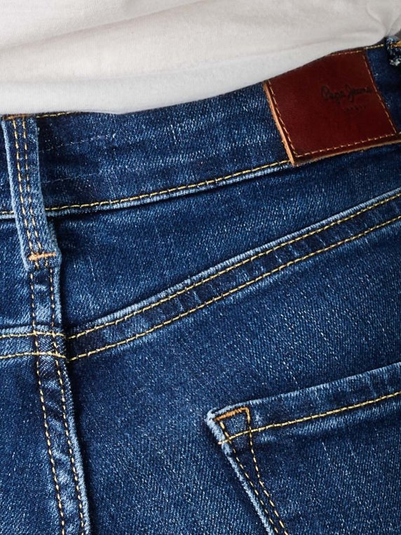 Die Pepe Jeans Regent Skinny Fit in der Farbe Medium Dark Wiser ist eine Five-Pocket-Jeans mit hohem Bund und eng geschnittenen Beinen. Die Jeans im lässigen Used-Look punktet mit einem Materialmix, der sie besonders elastisch und flexibel macht. Die Jeans wird mit einem Knopf und einem verdeckten Reissverschluss verschlossen. Die Ziernähte bilden einen farblichen Kontrast. Pepe produziert nach den strengen Richtlinien des Global Organic Textile Standards, um die Umwelt zu schützen.