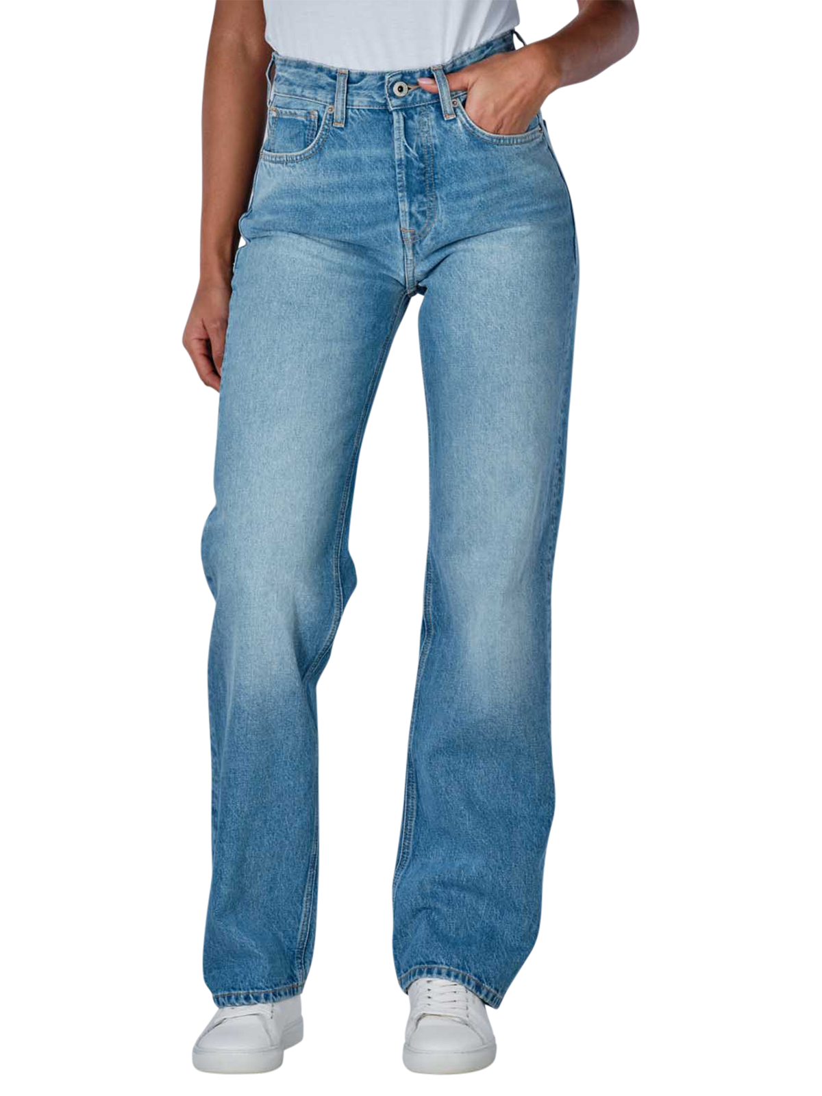 Die Pepe Jeans Robyn High Straight Fit in Hellblau sind perfekt für Frauen, die Stil und Komfort kombinieren möchten. Diese Jeans bietet eine gerade Passform mit einer hohen Bundhöhe und besteht aus 100% Baumwolle ohne Stretchanteil, was für eine klassische Silhouette sorgt. Sie verfügt über einen Five-Pocket-Stil und eine praktische Knopfleiste. Die helle Waschung verleiht ihr einen frischen Look, ideal für den Alltag. Pflegeleicht bei 40°C waschbar.
