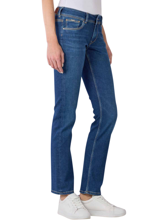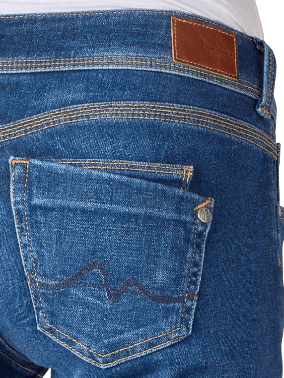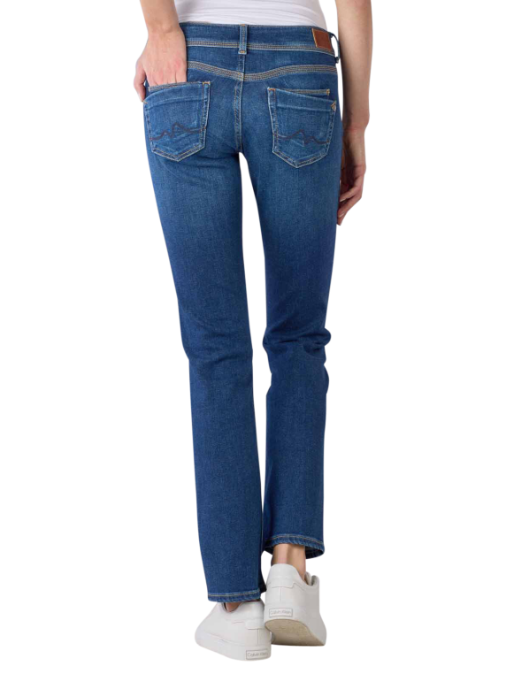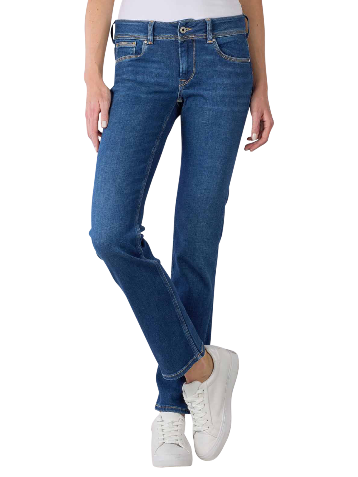 Die Pepe Jeans Saturn Straight Fit in der Farbe Blue besteht aus einer elastischen Baumwoll-Mischung und zieht mit sattem Blauton und optischen Sitzfalten Blicke auf sich. Sie ist im klassischen 5-Pocket-Stil gehalten und kombiniert diesen mit einer mittelhohen Taille und engen, gerade verlaufenden Beinen. Die Damenjeans lässt sich bei 40 °C in der Maschine waschen und mässig heiss bügeln, aber nicht trommeltrocknen.