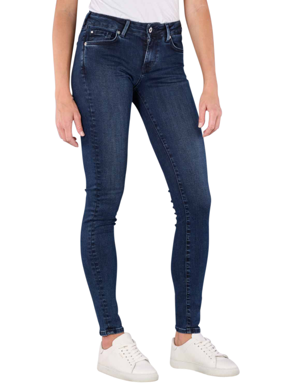 Die Pepe Jeans Low Soho in der Farbe Dark Blue ist eine Five-Pocket Jeans im Casual-/Business-Stil. Die Jeans ist in der Passform Skinny Fit geschnitten. Sie hat eine mittlere Bundhöhre, sehr eng geschnittene Oberschenkel und einen engen Beinausschnitt. Hergestellt ist diese Pepe Jeans aus 84 % Baumwolle aus dem Pepe Future Programm, 14 % Polyester und einem Stretchanteil von einem % Elasthan. Im Normalwaschgang lässt sich die Jeans bequem bei 30 Grad waschen.