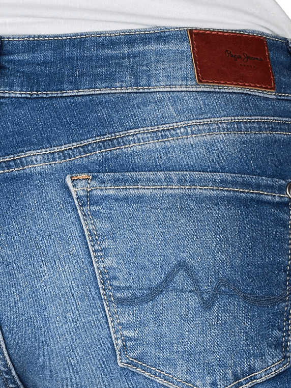 Die Pepe Jeans Soho Skinny Fit hat eine mittlere Bundhöhe. Die Five-Pocket-Jeans schmiegt sich figurbetonend an die Beine an. Der durch die Waschung entstandene Used-Look betont zusätzlich den Bereich des Gesäss. Die Hose besteht aus Bio-Baumwolle, gepaart mit Polyester und Elasthan, welches dafür sorgt, dass die enge Hose trotzdem sehr bequem zu tragen ist. Als Teil des Pepe Future Programms wurden bei der Herstellung der Hose diverse Nachhaltigkeitsaspekte beachtet.