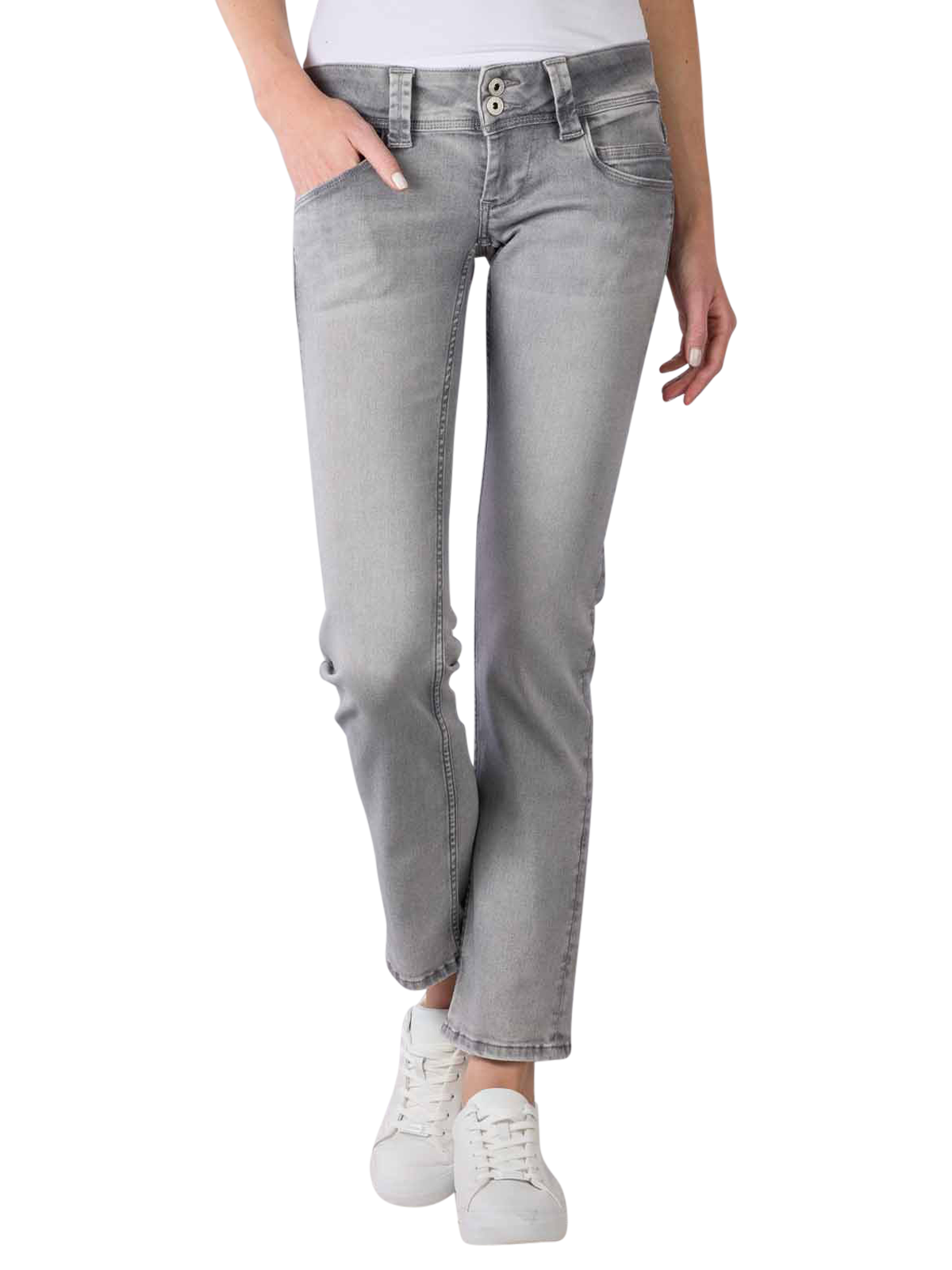 Die Pepe Jeans Low Venus Slim Straight Fit Damenjeans in der Farbe Grey ist im klassischen Five-Pocket-Stil gehalten und kombiniert einen tiefen Bund mit Knopf und Reissverschluss mit einem schmalen, geraden Bein. Sie besteht aus einer hochwertigen Baumwoll-Mischung mit Stretchanteil, die ihr einen hohen Tragekomfort verleiht. Zudem ist die Damenjeans bei 40 °C waschbar sowie bei niedrigen Temperaturen trocknergeeignet und somit pflegeleicht.