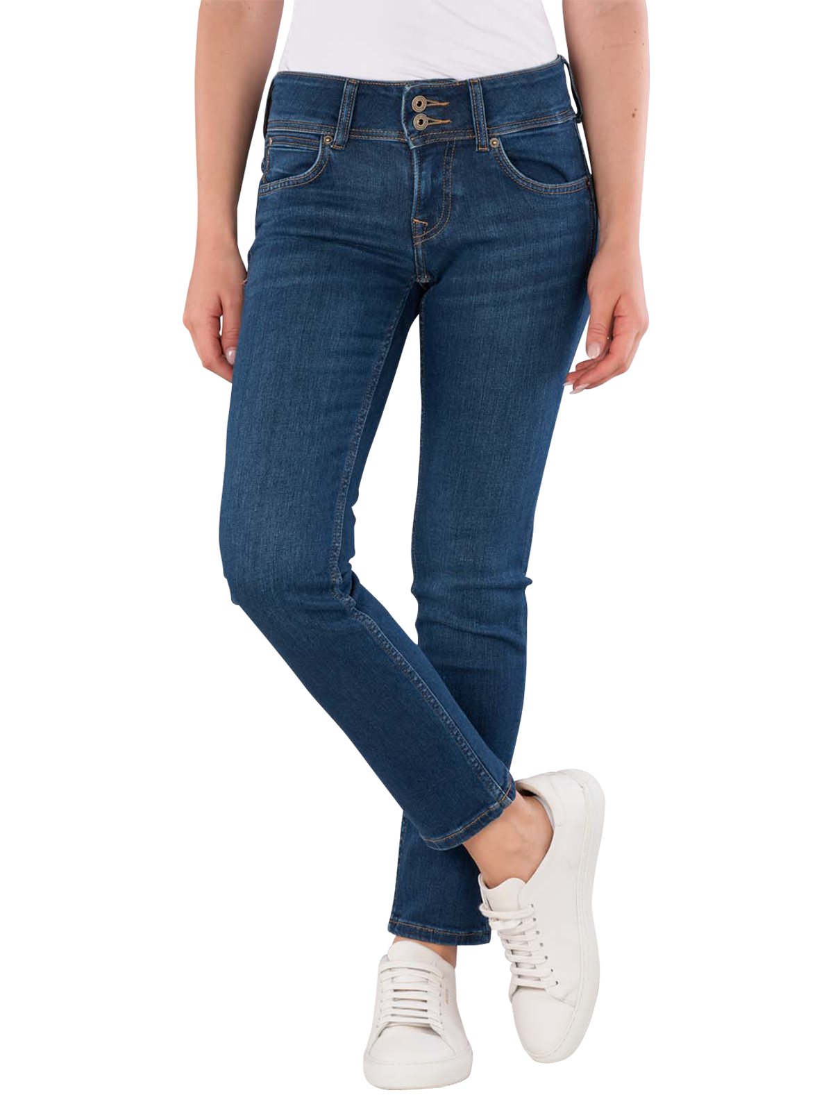 Die Pepe Jeans Venus Slim Fit in Mid Blue bietet eine moderne Passform für modebewusste Frauen. Mit ihrem tief sitzenden Bund und geradem Beinausschnitt sorgen sie für eine trendige Silhouette. Der Stretchanteil garantiert Bewegungsfreiheit, während die dunkle Waschung vielseitig kombinierbar ist. Hergestellt aus 83% Baumwolle, 12% Modal, 4% T400 und 1% Elasthan bietet diese Five-Pocket-Jeans den idealen Alltagslook. Perfekt für jede Gelegenheit ein Must-Have für Ihre Jeans-Kollektion!