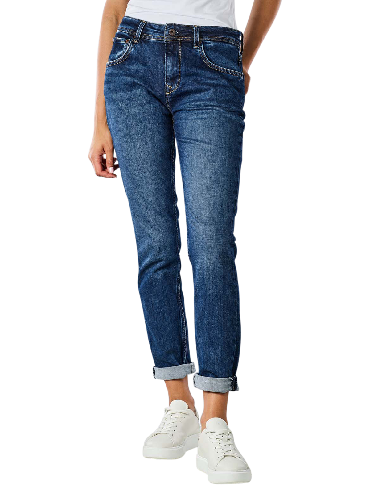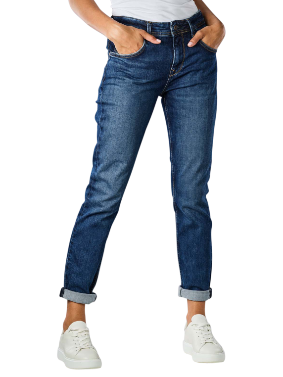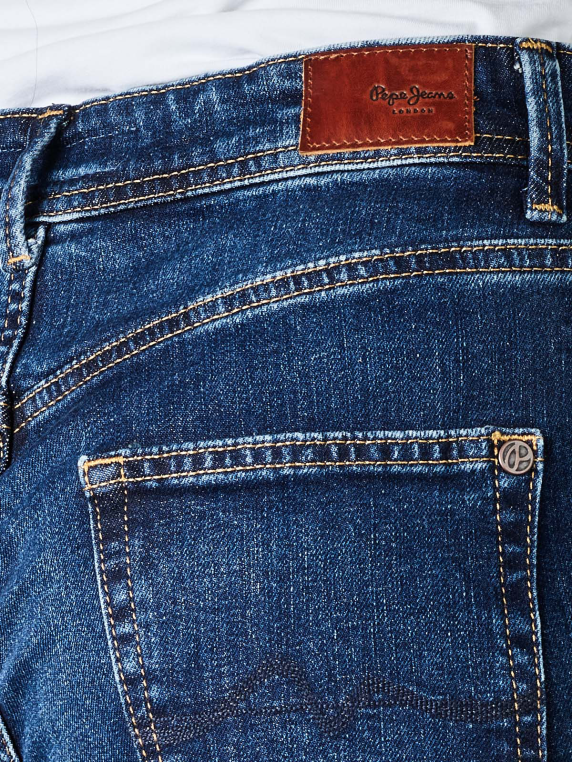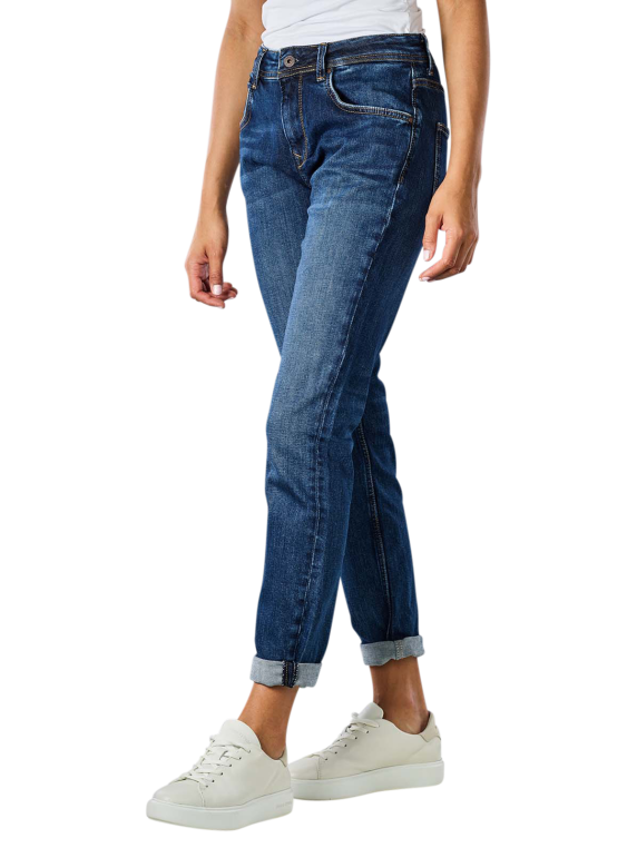 Diese Jeans von Pepe Jeans besteht zu 99 % aus Baumwolle und zu einem % aus Elasthan. Der Stoff ist standardmässig dick. Die dunkelblaue Farbe der Jeans nennt sich Medium Dark Wiser. Sie hat einen Reissverschluss und ist strechtbar. Die nachhaltige Hose hat Tapered Fit, Relaxed Fit, Mom Fit und Cropped and Ankle als Passform. Die Bundhöhe ist mittel.
