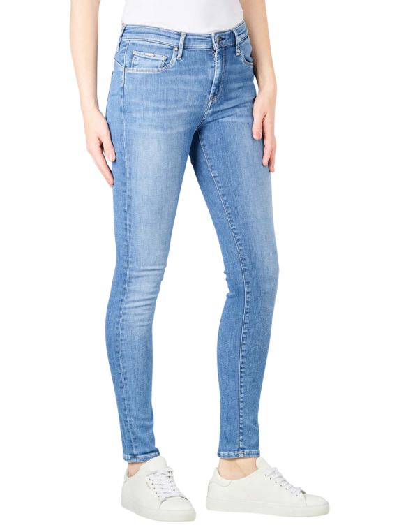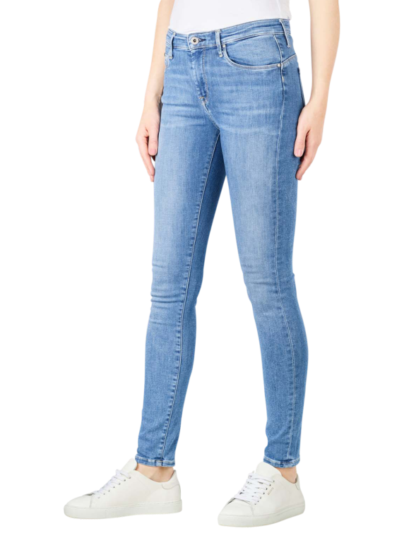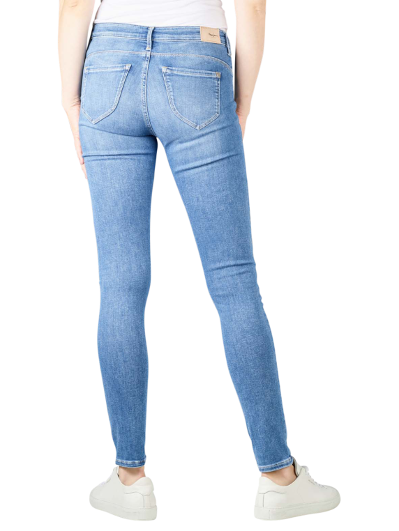Eng anliegend und mit schmalem Bein gearbeitet ist die Damen-Jeans Pepe Jeans Zoe Skinny Fit. Die Damen-Jeans Zoe Skinny Fit von Pepe Jeans überzeugt durch helles Blau, Verwaschungen und Crinkle-Effekten an den Oberschenkeln. Für guten Sitz sorgt ein Mix aus Baumwolle, Polyester und Elasthan. Pepe Jeans-Markenlogos befinden sich hinten rechts am Bund und an der Müntzasche.