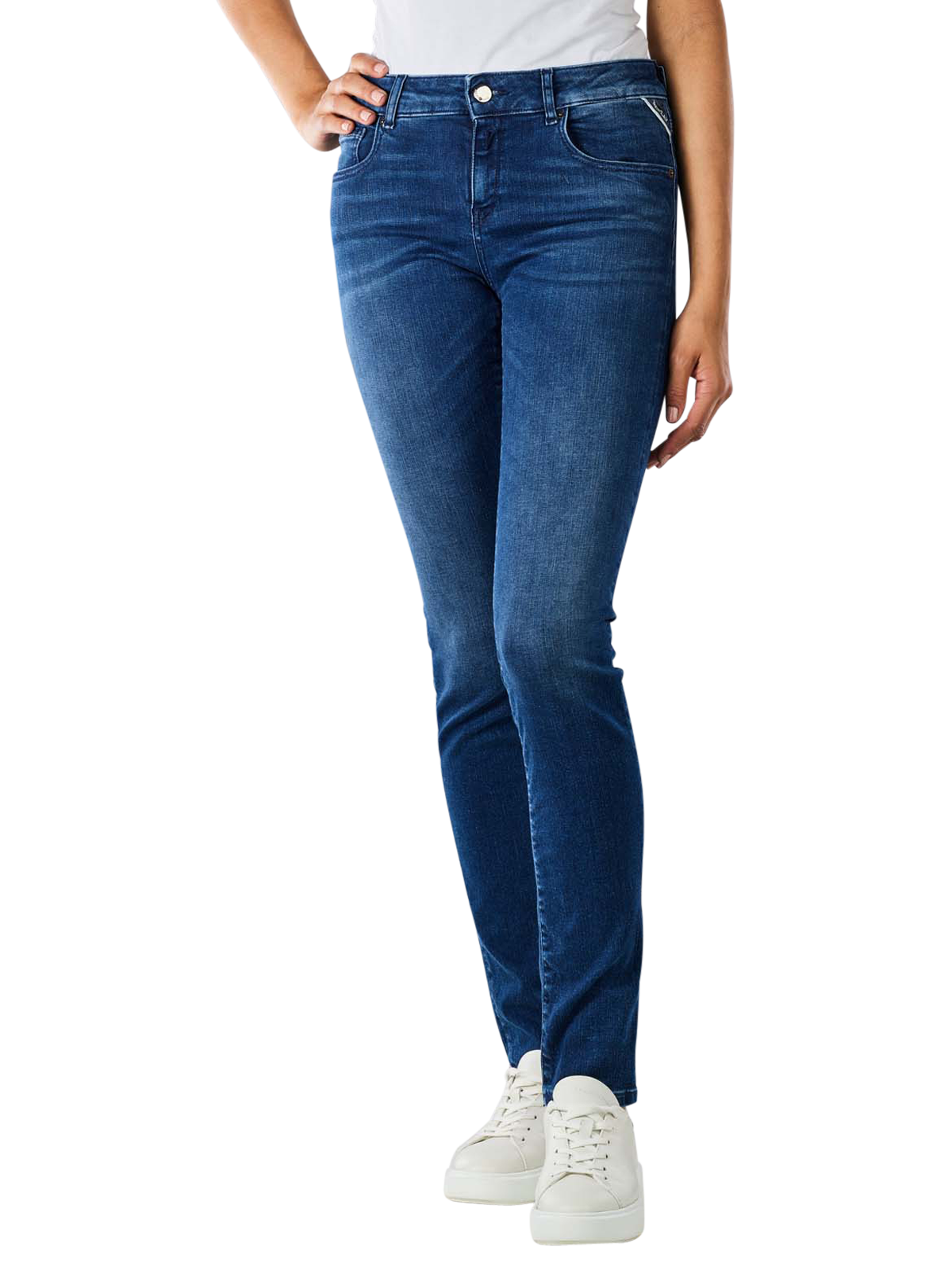 Die Replay Faaby Jeans Slim Fit ist eine figurbetonende Five-Pocket-Jeans mit eng anliegenden Beinen und normaler Bundhöhe. Die Jeans in der Farbe Med Blue besteht aus einem Baumwoll-Materialmix mit Stretchanteil und ist insgesamt etwas dünner. Sie kann bei 30 °C im Schonwaschgang gewaschen werden. Bitte nur auf der Leine trocknen lassen. Die lässige Jeans wird vorne mit einem Knopf und einem verdeckten Reissverschluss verschlossen.