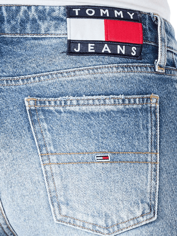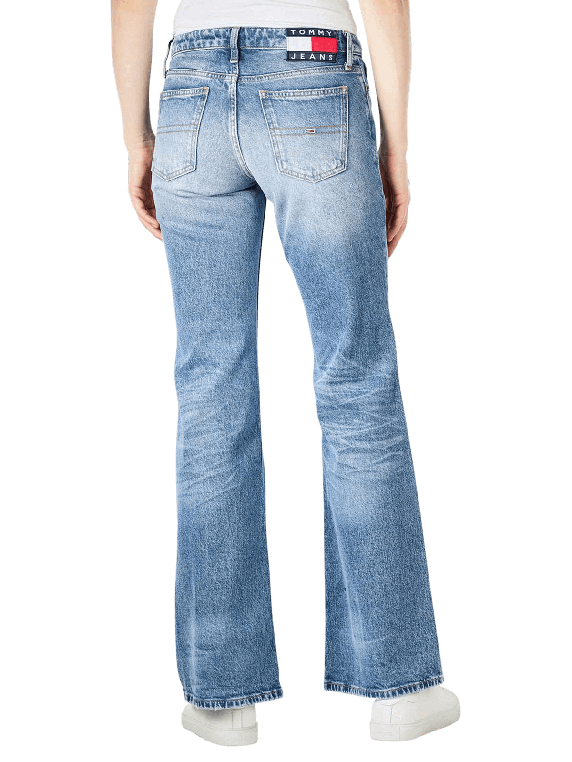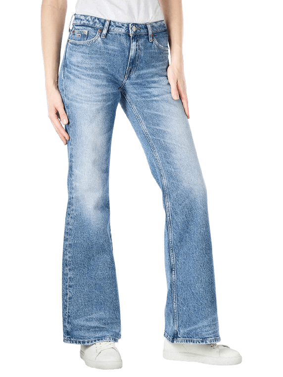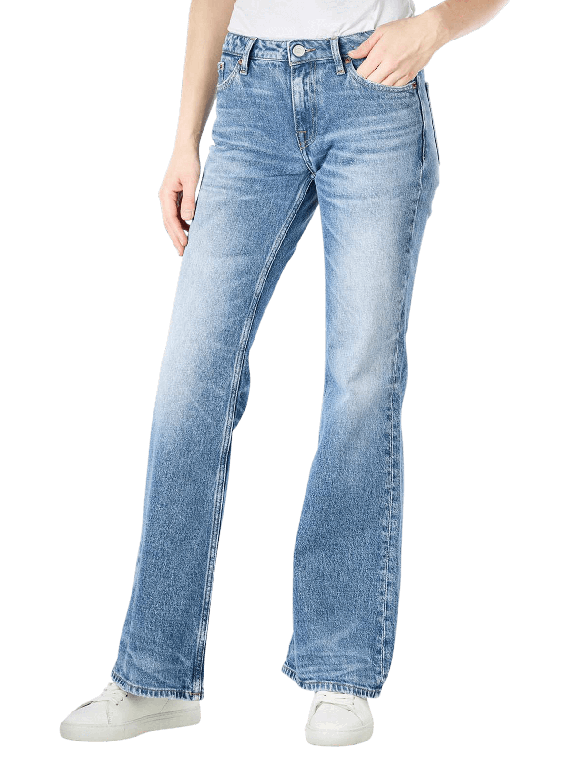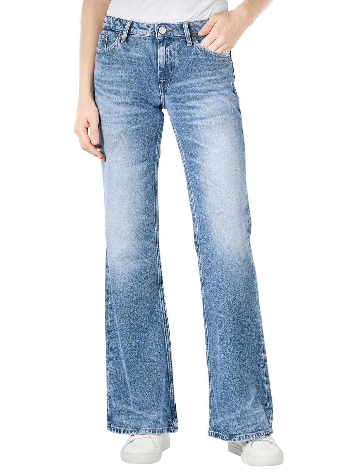 Die Tommy Jeans Sophie Low Rise Flare ist eine legere Jeans im Five-Pocket-Style mit niedriger Bundhöhe und locker und gerade geschnittenen Beinen. Der Stoff besteht zu 99 % aus Baumwolle mit 1 % Stretchanteil und ist insgesamt etwas dicker. Die Jeans wird mit einem Reissverschluss verschlossen. Das Unternehmen legt Wert auf Nachhaltigkeit, Umwelt- und Klimaschutz, daher werden die Jeans zum grossen Teil aus recycelten Materialen gefertigt.