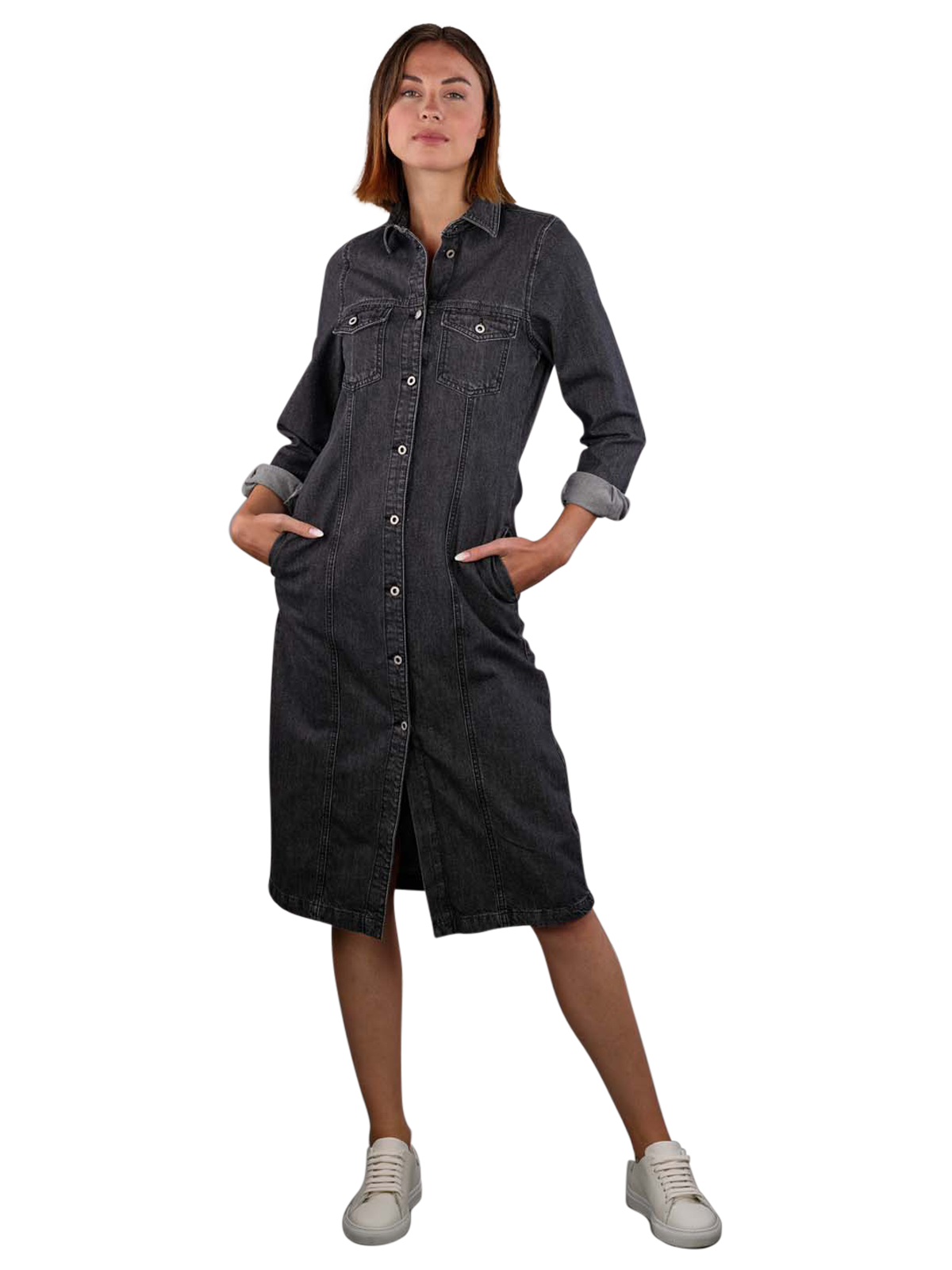 Das Pepe Jeans Midi Shirt Dress in der Farbe Charcoal kombiniert Schwarz und Grau zu einem stilvollen Look. Dieses Frauenkleid besteht aus 100% Baumwolle und gehört zur Pepe Future Linie. Es bietet optimalen Tragekomfort und ist bei 40°C im Normalwaschgang waschbar. Nicht bleichen. Ideal für verschiedene Anlässe, verleiht es jeder Garderobe zeitlose Eleganz und Vielseitigkeit. Perfekt für modebewusste Frauen.