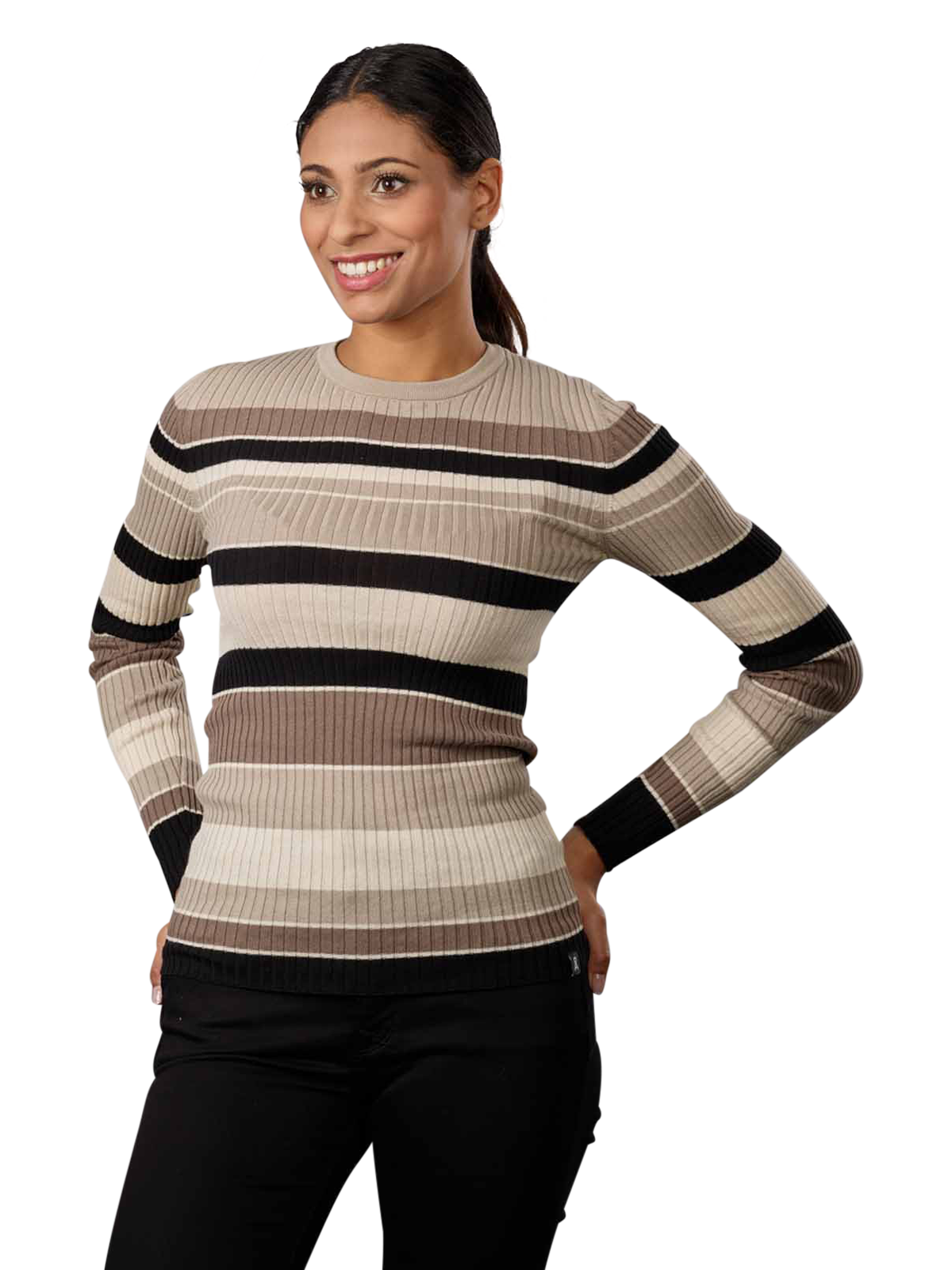 Der figurbetont geschnittene und doch legere Armedangels Alaania College Stripe Pullover Crew Neck mit langem Arm und Rundhalsausschnitt wurde nach dem Global Organic Textile Standard gefertigt und bietet einen hohen Tragekomfort. Der elegante, bequeme und vielseitig kombinierbare Pulli wird in den Varianten uni Schwarz und geringelt Sand Stone angeboten. Der attraktive, pflegeleichte und formbeständige Pullover besteht aus einhundert Prozent Baumwolle.