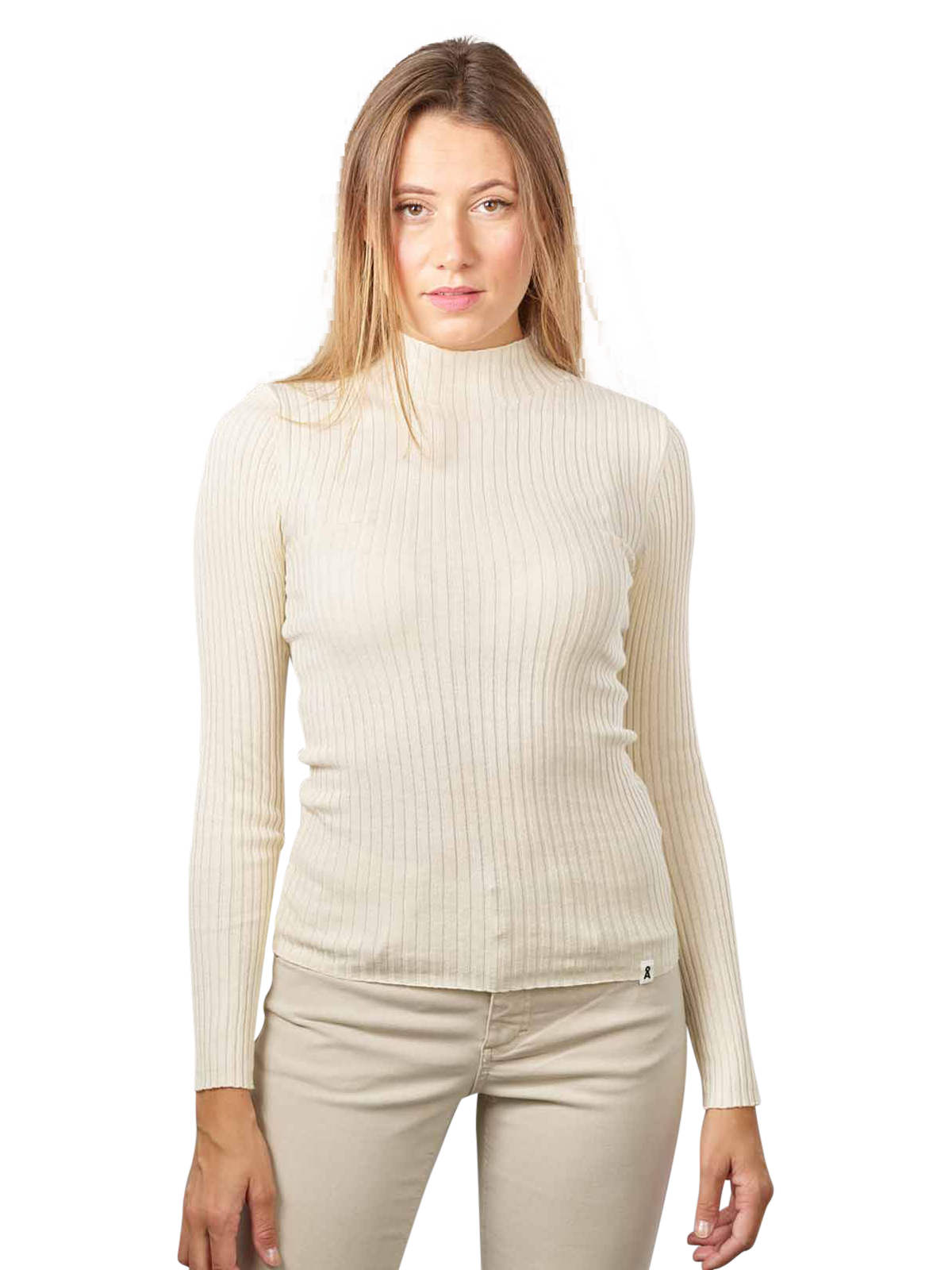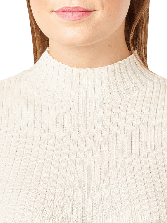Dieser enganliegende Pullover mit Stehkragen ist in verschiedenen Farben erhältlich und eignet sich auch als Unterzieh-Rolli für die kalte Jahreszeit. Durch die Rippenstruktur ist der Pullover, der aus reiner Baumwolle besteht, leicht dehnbar und passt sich der Figur an. Gewaschen werden kann er im Schonwaschgang in der Maschine bei 30 Grad.
