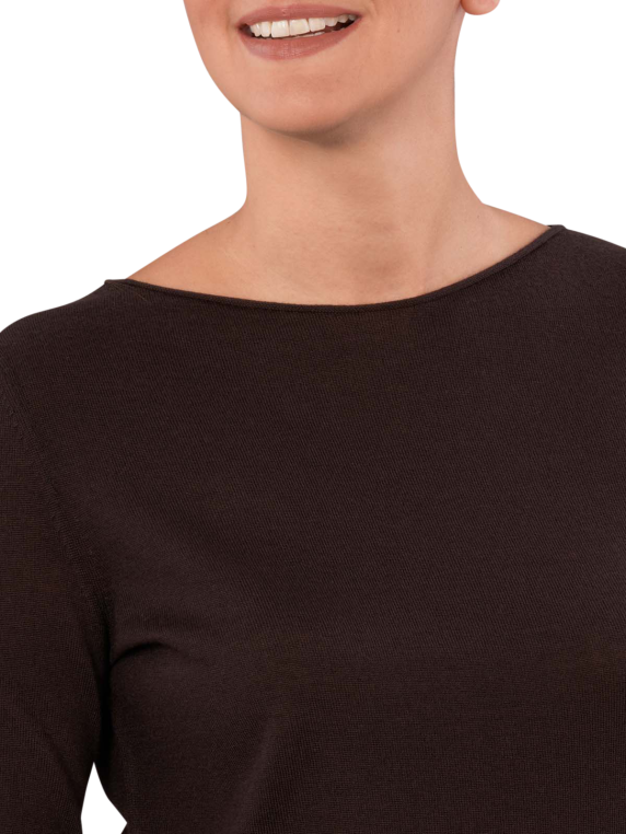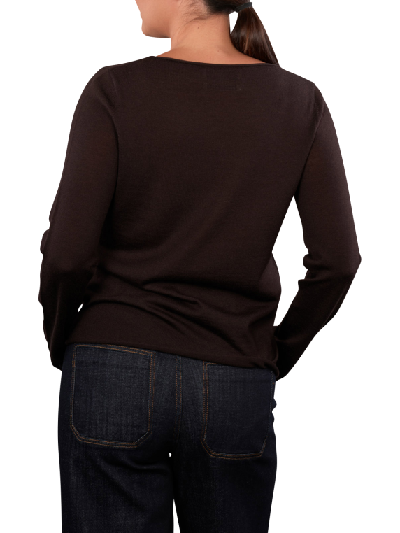 Der Marc O'Polo Pullover Boat Neck in Dark Coffee bietet einen klassischen Rundhalskragen und ist aus 100% Schurwolle gefertigt. Er eignet sich für kühle Tage und kann vielseitig kombiniert werden. Die Handwäsche sorgt für eine einfache Pflege. Mit dem Responsible Wool Standard (RWS) ist der Pullover zudem umweltbewusst produziert. Ein zeitloses Kleidungsstück für Frauen, das Komfort und Stil vereint.