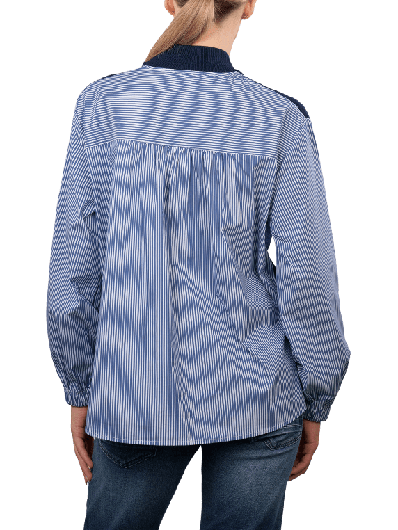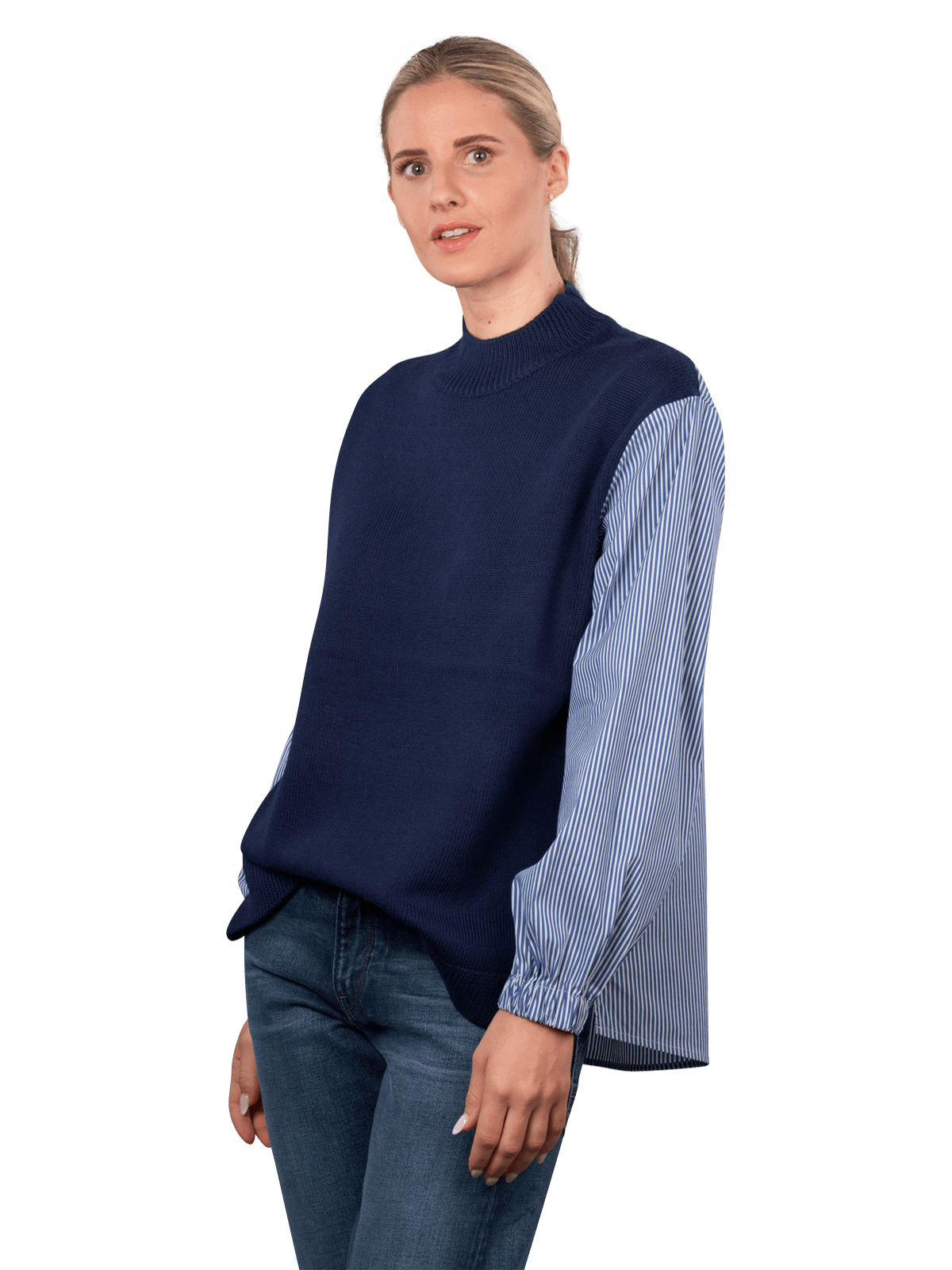 Der Mos Mosh Juella Pullover Stripe Combi Knit in Hellblau/Dunkelblau/Mehrfarbig bietet einen Rundhalskragen und eine bequeme Passform. Er eignet sich für verschiedene Anlässe und lässt sich vielseitig kombinieren. Die Vorderseite besteht aus 100% Wolle, während die Rückseite aus einer Baumwoll-Polyamid-Mischung gefertigt ist. Pflegeleicht im Schonwaschgang bei 30°C, ist dieser Pullover eine praktische Wahl für stilbewusste Frauen.