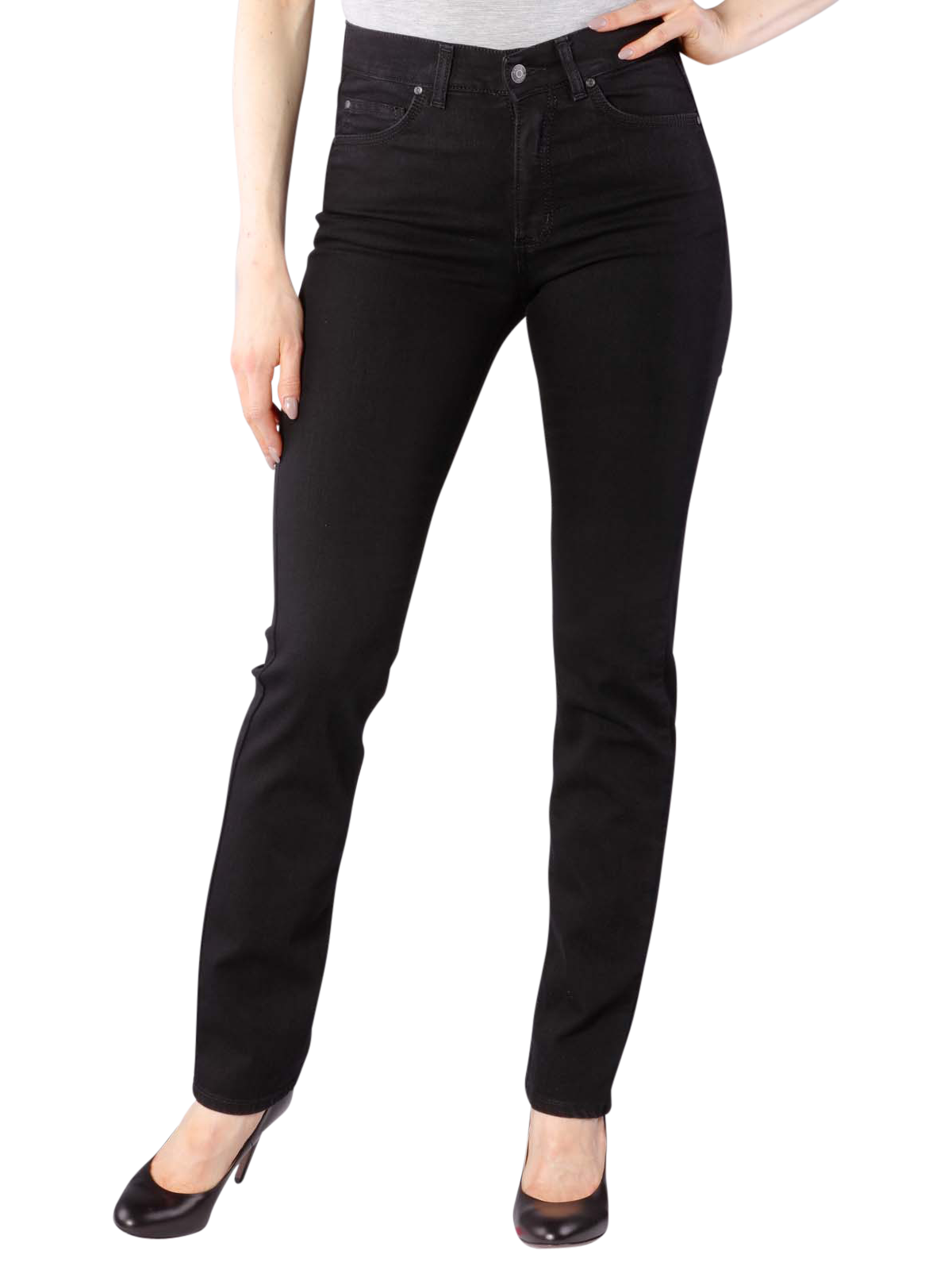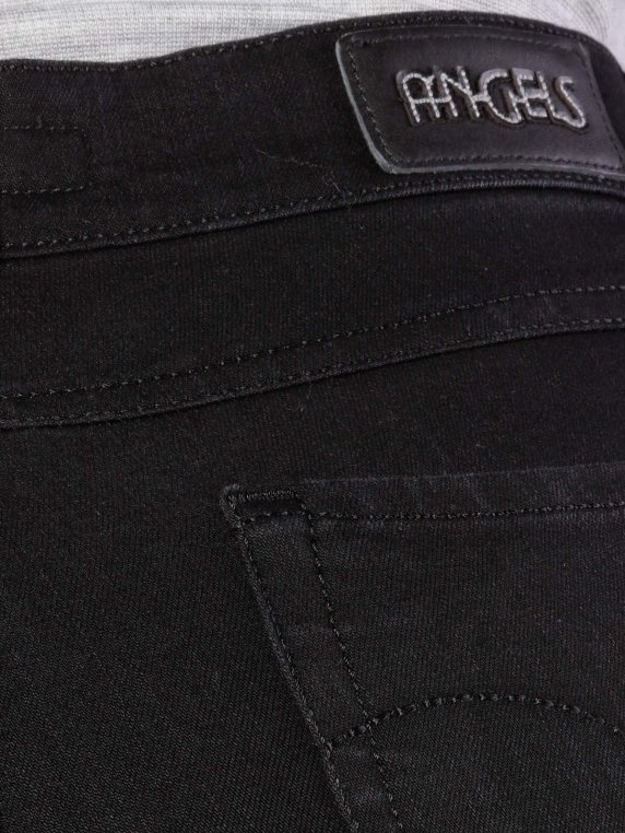 Enganliegende, figurnahe Jeans für Damen in Tiefschwarz. Ein leichter Stretchanteil ist vorhanden, ebenso wie zwei aufgenähte Taschen vorne und hinten, sowie ein kleines Logo auf Gürtelhöhe. Grössentabelle für Angels Jeans: Grösse 34 = W26 Grösse 36 = W28 Grösse 38 = W30 Grösse 40 = W32Grösse 42 = W33Grösse 44 = W34 Grösse 46 = W36