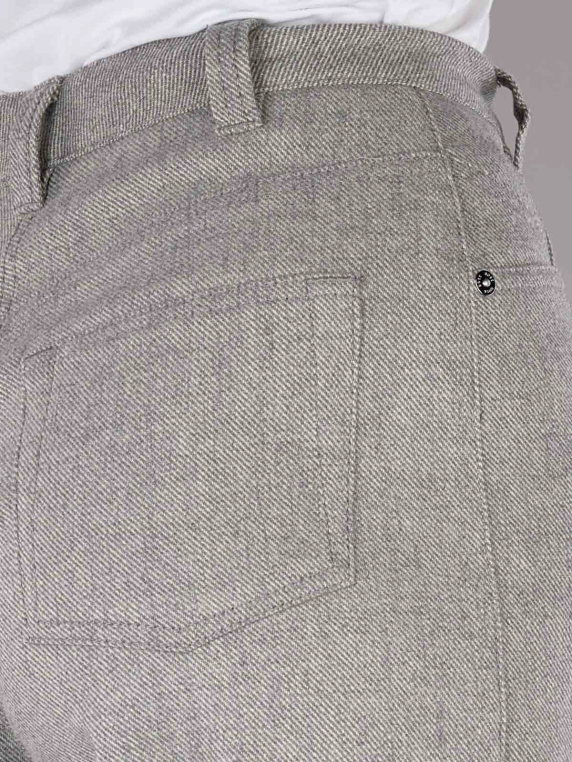 Die Boss Orange C-Taflana Pant Silver ist eine klassische graue Stoffhose für Frauen mit einem geraden und weiten Beinausschnitt. Sie besitzt eine hohe Bundhöhe und bietet dank des Stretchanteils eine komfortable Passform. Hergestellt aus 57% Polyester, 26% Wolle, 15% Viskose und 2% Elasthan, hat die Hose eine Standard-Dicke bis dickeren Stoff. Der Verschluss erfolgt über einen Reissverschluss. Pflegehinweis: Nicht waschen, nicht bleichen.