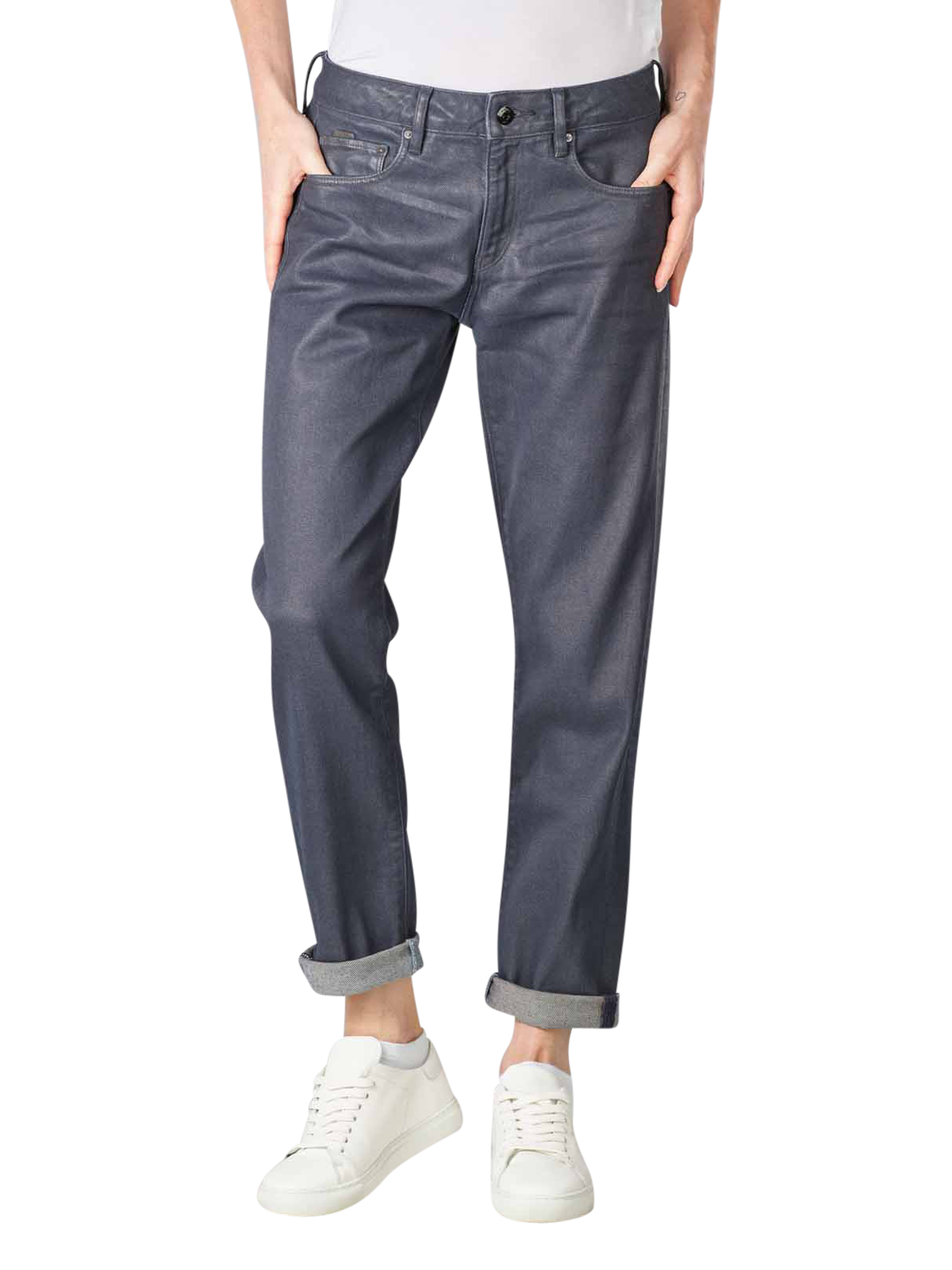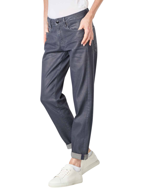 Die blaue beschichtete Five-Pocket Boyfriend Jeans mit angenehmem Stretchanteil besitzt einen Reissverschluss. Besonders attraktiv fällt der gerade Oberschenkel- und Beinausschnitt. Figur schmeichelnd fallen die tief sitzenden Gesässtaschen aus. Die Jeans wurden auf Basis einer besonderen Designphilosophie produziert. Das recycelte Material genügt höchsten Ansprüchen. Schädliche Rohstoffe werden nicht verwendet.