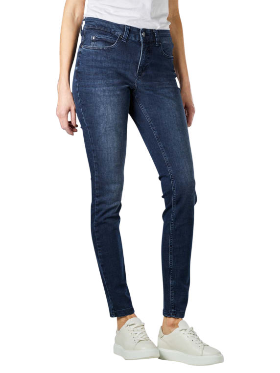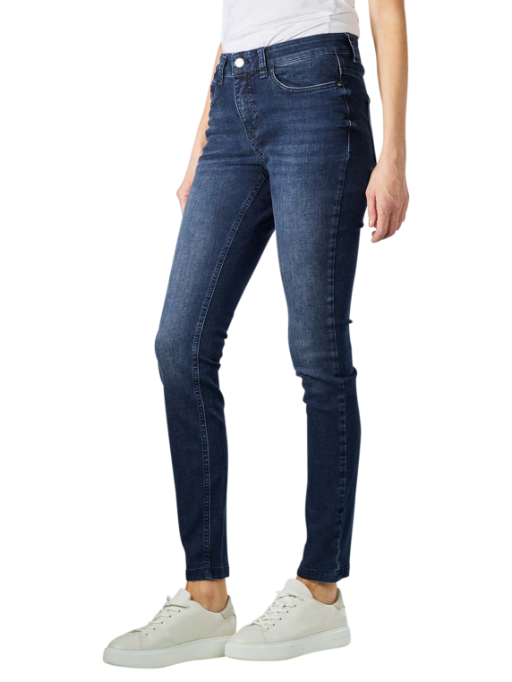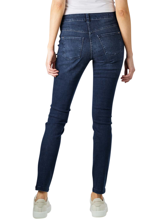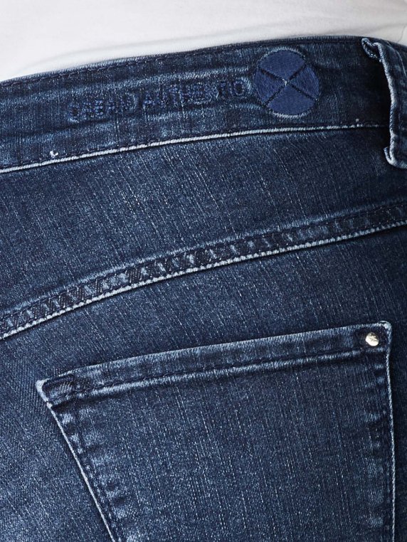 Die blaue Damenjeans mit Abnutzungseffekt besteht aus nachhaltiger Baumwolle und passt sich durch ihre enganliegende Schnittform attraktiv am Bein an. Die Jeans mit mittlerer Bundhöhe wird mit einem Reissverschluss geschlossen und ist dank Stretchanteil bequem. Die Hose kann privat oder im Büro getragen werden und ist bei 30 Grad waschbar.