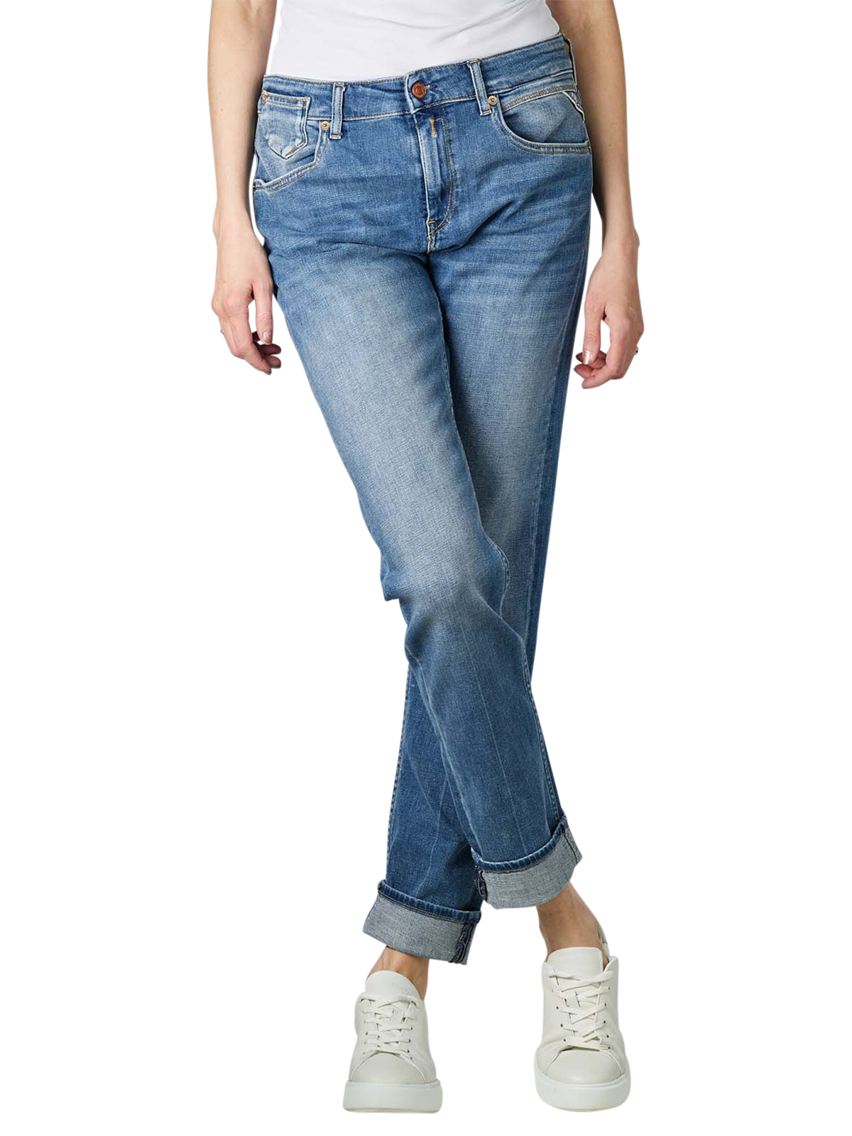 Die Replay Marty Jeans Boyfriend Fit ist im stylischen Boyfriend- Style geschnitten. Sie hat einen Stretchanteil, der sie bequem zu tragen macht. Sie ist Cropped und Ankle geschnitten. Oberschenkel und Beinausschnitt sind gerade. Der Bund der Replay Marty Jeans Boyfriend Fit ist mittelhoch. Sie ist im Five Pocket Stil und hat einen Reissverschluss. Waschbar ist die Jeans bei 30 Grad.