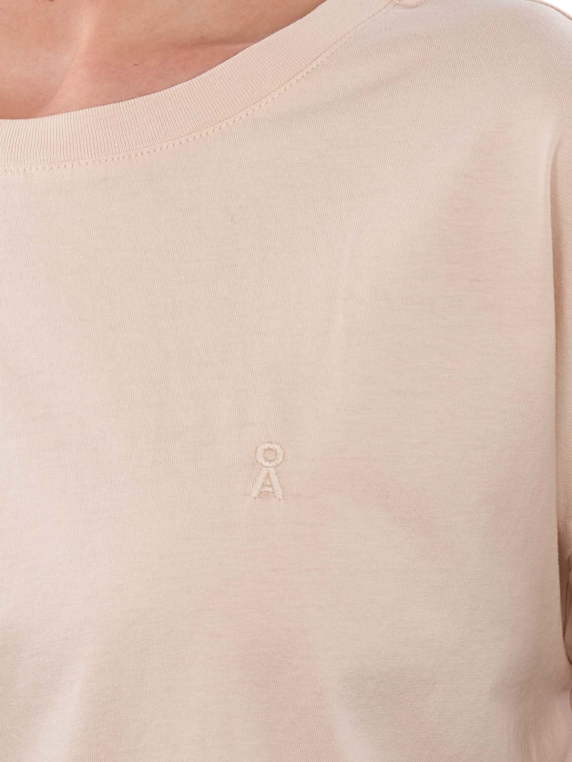 Das Armedangels Idaara T-Shirt mit kurzen Ärmeln in Ecru bietet einen Rundhalsausschnitt und besteht aus 100% Baumwolle. Es ist nach dem Global Organic Textile Standard (GOTS) zertifiziert, was umweltfreundliche Produktion garantiert. Das T-Shirt kann bei 30°C im Normalwaschgang gewaschen werden und ist pflegeleicht. Es eignet sich für verschiedene Freizeitaktivitäten und bietet hohen Tragekomfort.
