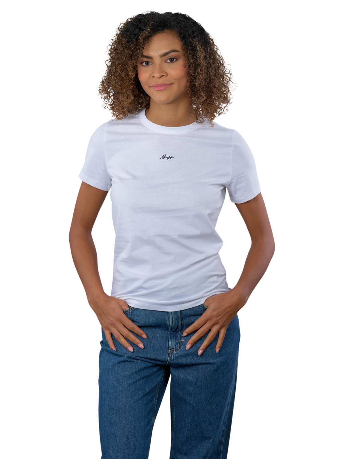 Das Boss Orange C-Elogo5-S T-Shirt für Frauen besticht durch seinen modischen Stehkragen in der klassischen Farbe Weiss. Hergestellt aus 100% hochwertiger Baumwolle, bietet das T-Shirt nicht nur erstklassigen Tragekomfort, sondern auch eine langlebige Qualität. Ideal für modische Alltagslooks, lässt es sich problemlos bei 30°C im Schonwaschgang waschen. Bleichen sollte vermieden werden, um die Farbstrahlkraft zu erhalten. Ein Must-Have in jeder Garderobe.