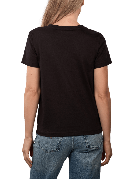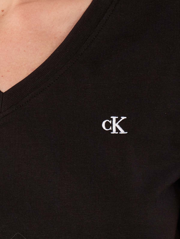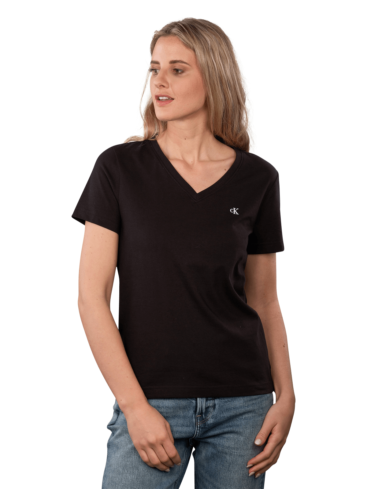 Das Calvin Klein Monogram T-Shirt V-Neck in Schwarz bietet einen klassischen V-Ausschnitt und ist aus 100% Baumwolle gefertigt. Es eignet sich für verschiedene Anlässe und lässt sich vielseitig kombinieren. Die Pflegeanleitung empfiehlt einen Spezialschonwaschgang bei 30°C und die Verwendung von Sauerstoffbleiche. Dieses T-Shirt vereint Komfort und Stil, ideal für modebewusste Frauen.