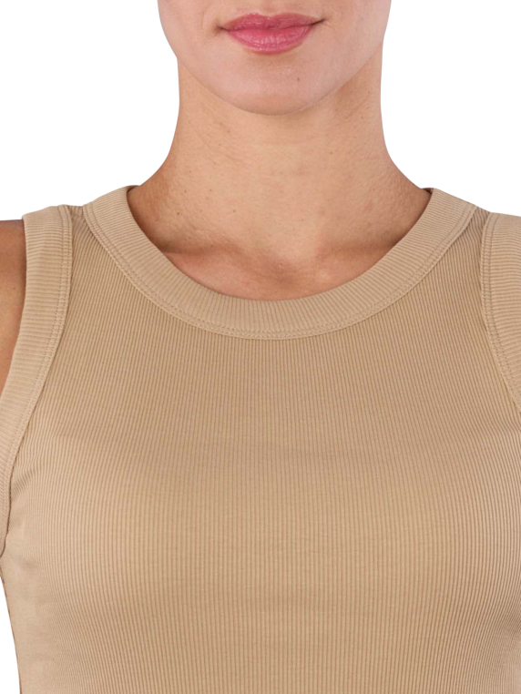 Das Drykorn Olina Riptop Sleeveless Round Neck T-Shirt in Beige ist speziell für Frauen designt. Es zeichnet sich durch einen klassischen Rundhalsausschnitt und ärmelloses Design aus, ideal für stilbewusste Trägerinnen. Gefertigt aus 100% Baumwolle, bietet es hohen Tragekomfort und Atmungsaktivität. Pflegeleicht im Schonwaschgang bei 30°C, nicht bleichen. Perfekt kombinierbar und ein Must-Have für zeitlose Eleganz im Alltag.